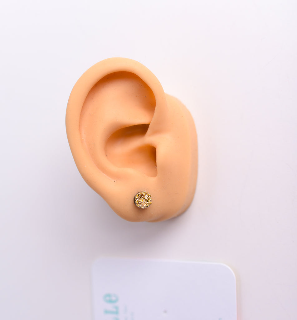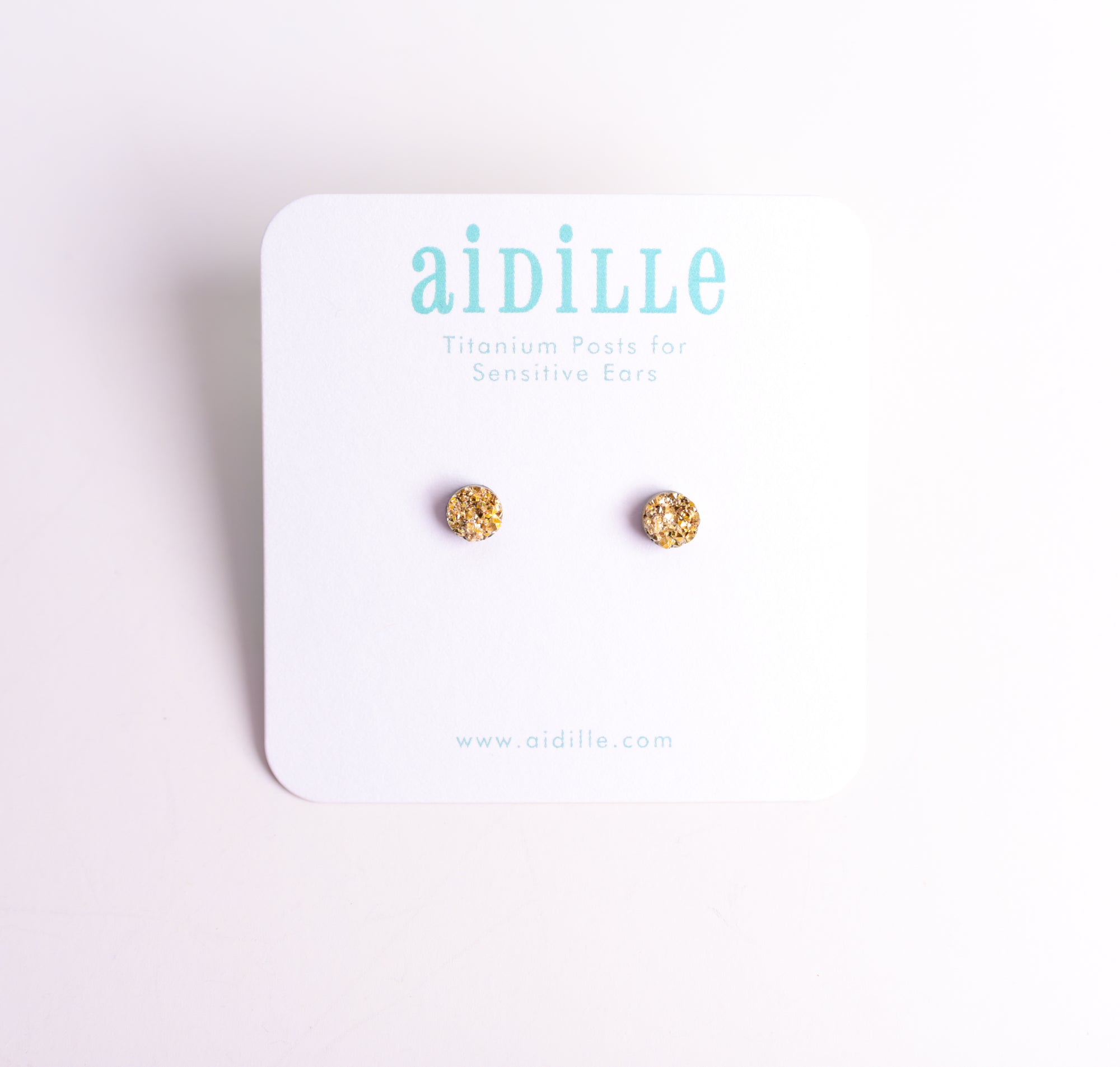Earrings are hand assembled using commercial charms and medical grade titanium posts. Colors may vary based on monitor settings.
