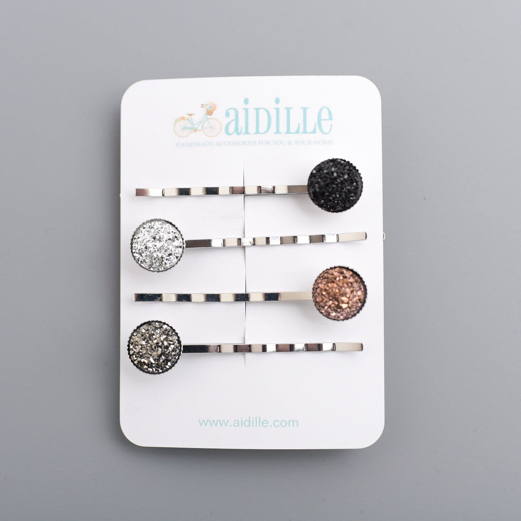 Metallic Sparkly Druzy Bobby Pins- Set of 4