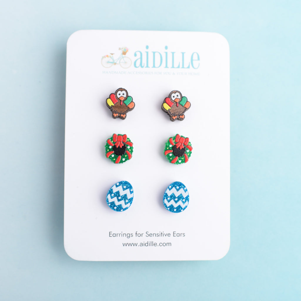 Multi Winter Holiday Earring Trio with Titanium Posts