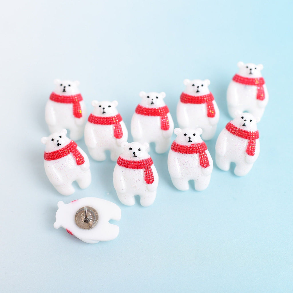 Polar Bear Glitter Resin Push Pins- Set of 10