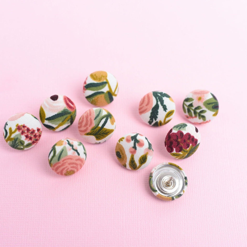Pink Wildwood Fabric Button Push Pins- Set of 10