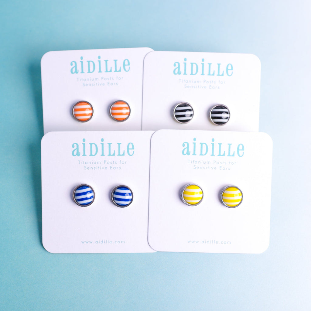 Striped Resin Earrings with Titanium Posts- Choose from 5 Colors