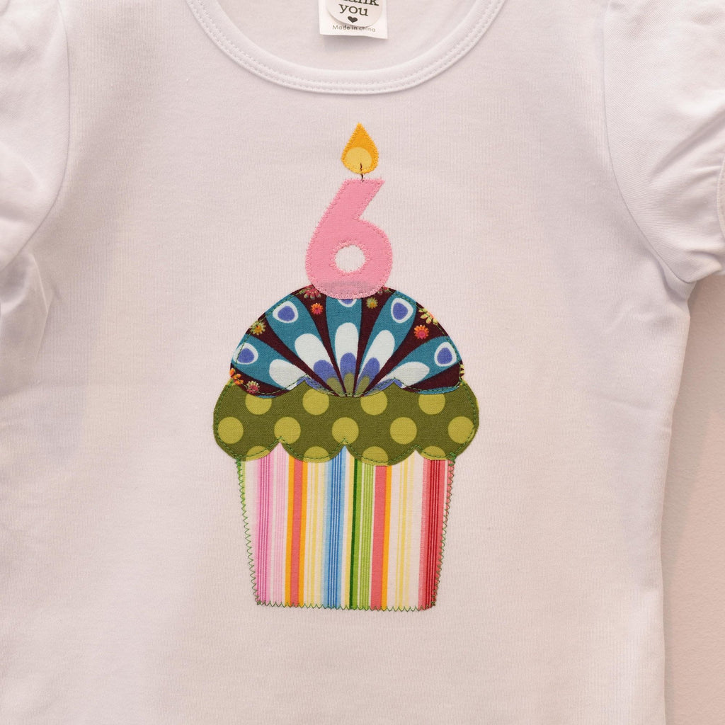 Girls 6th Birthday Shirt with Applique Cupcake and Candle