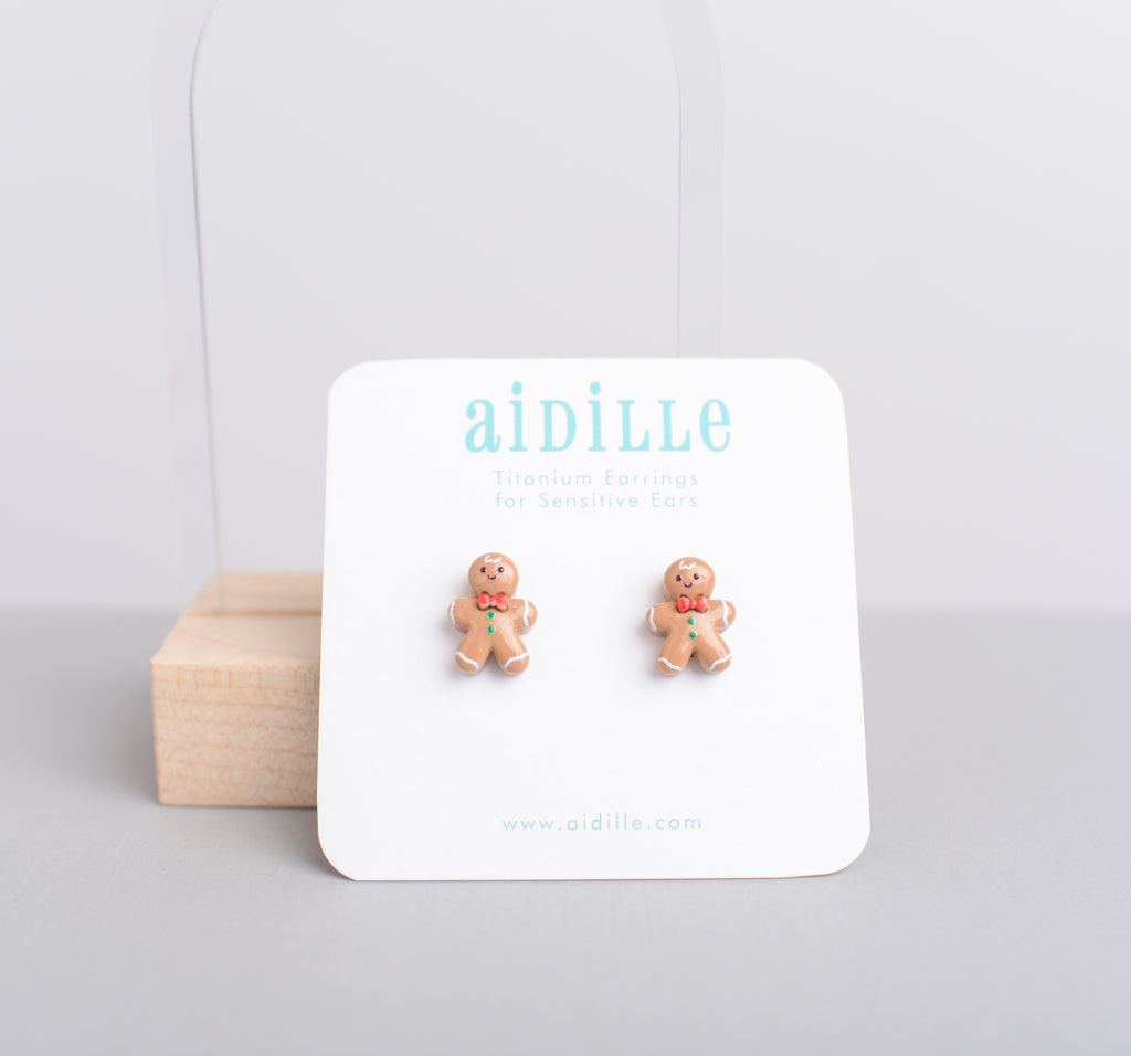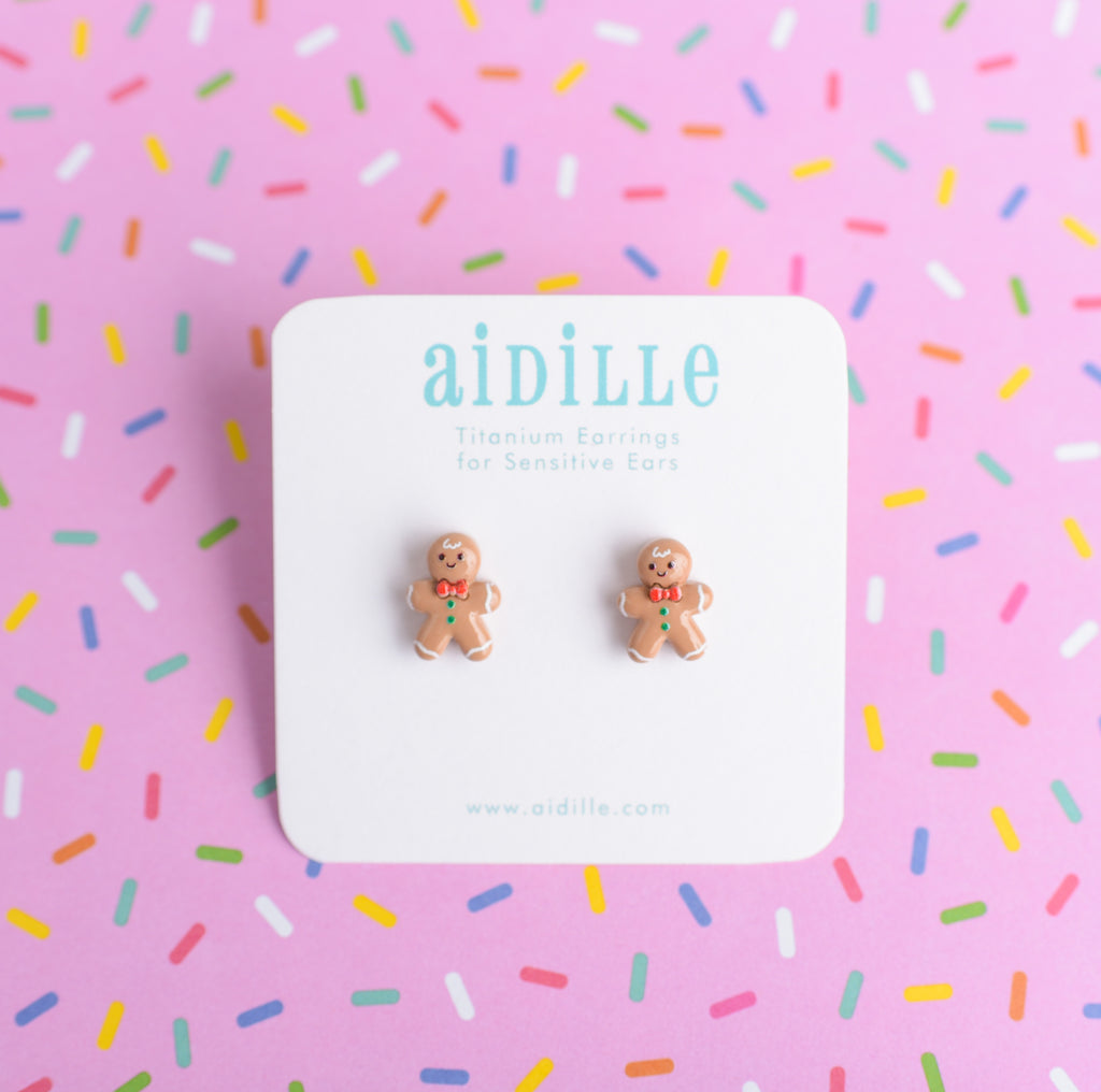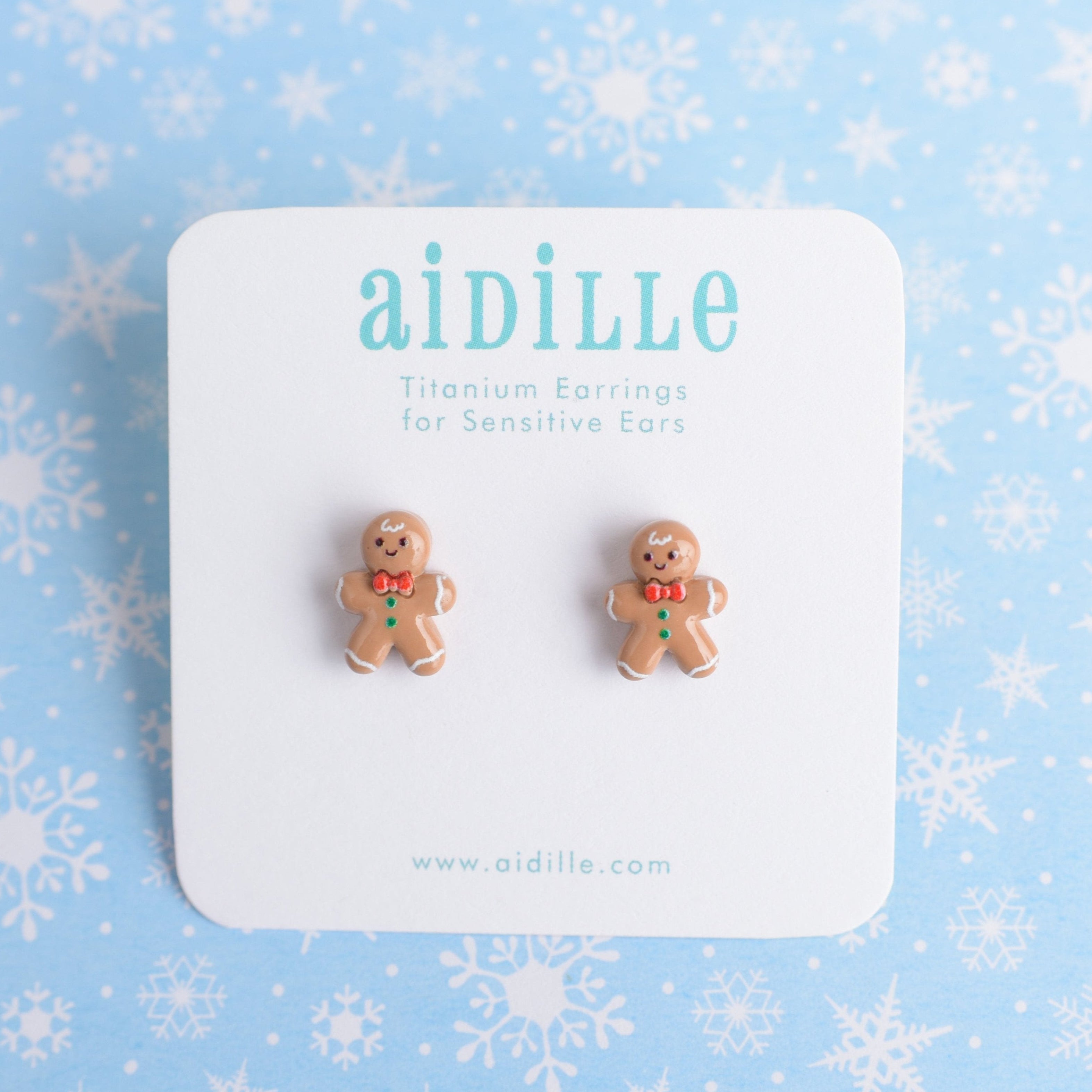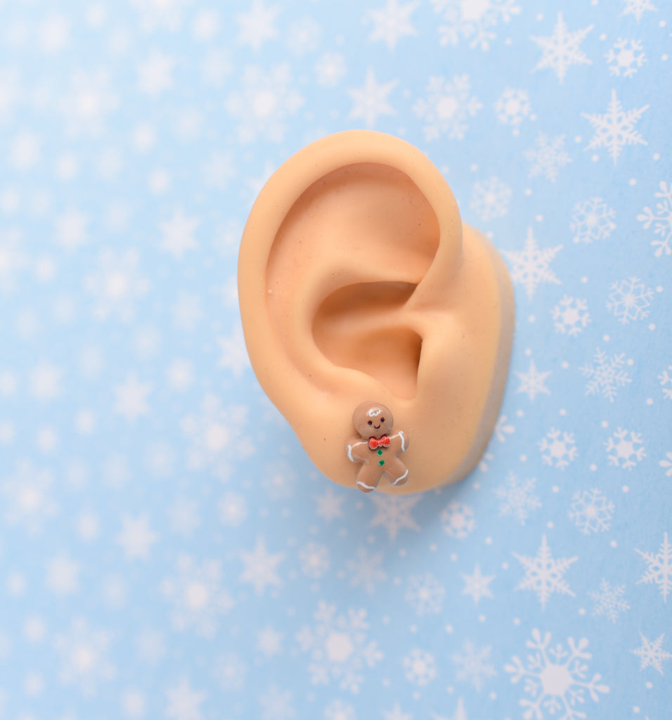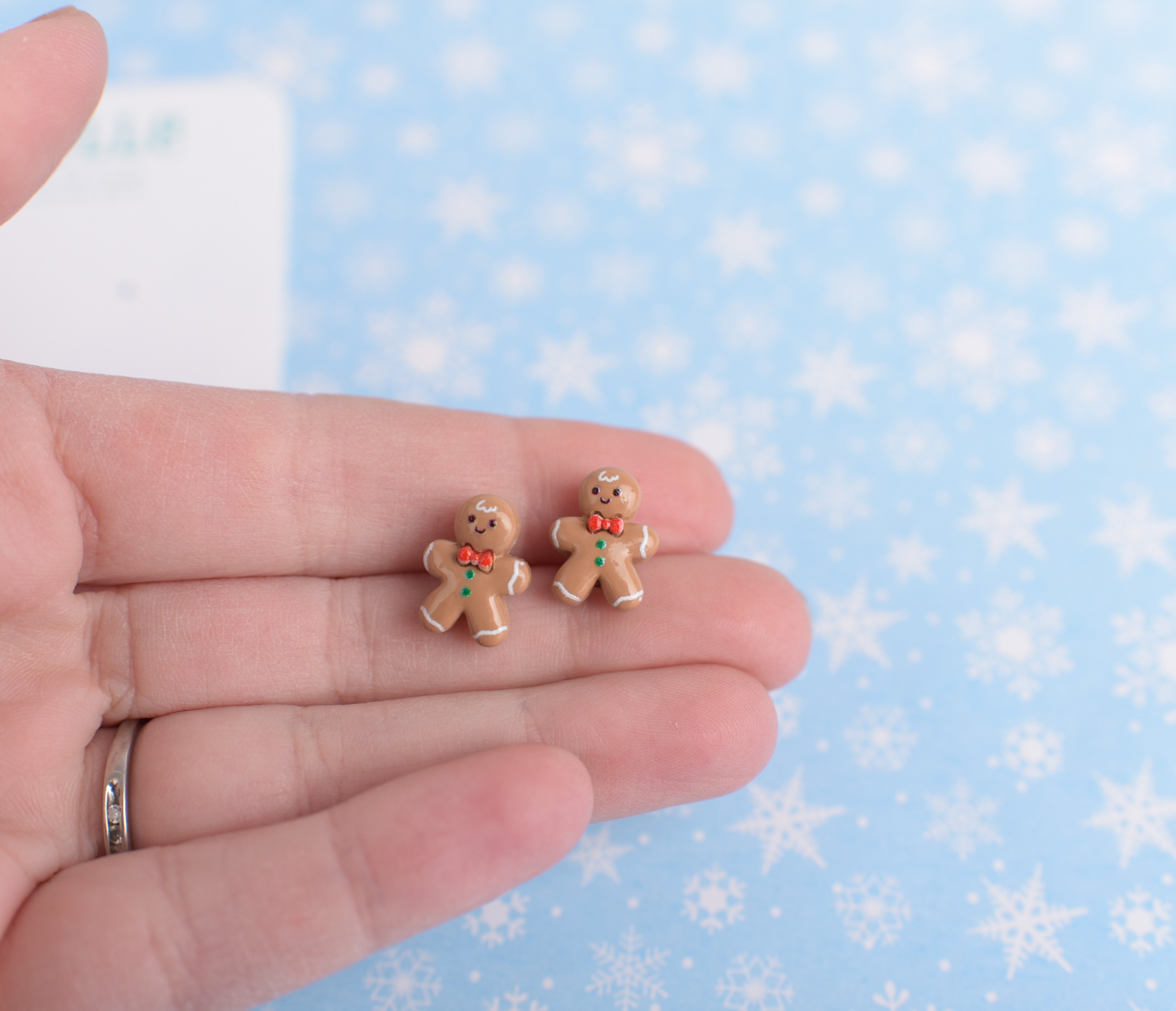 This sweet gingbread man earring set is made from thick chunky resin charms that are lightweight and hypoallergenic titanium posts. Earrings measure about 1/2" tall and wide and include both stainless steel butterfly and silicone backings for choice. Perfect gift for your favorite Christmas baker!
