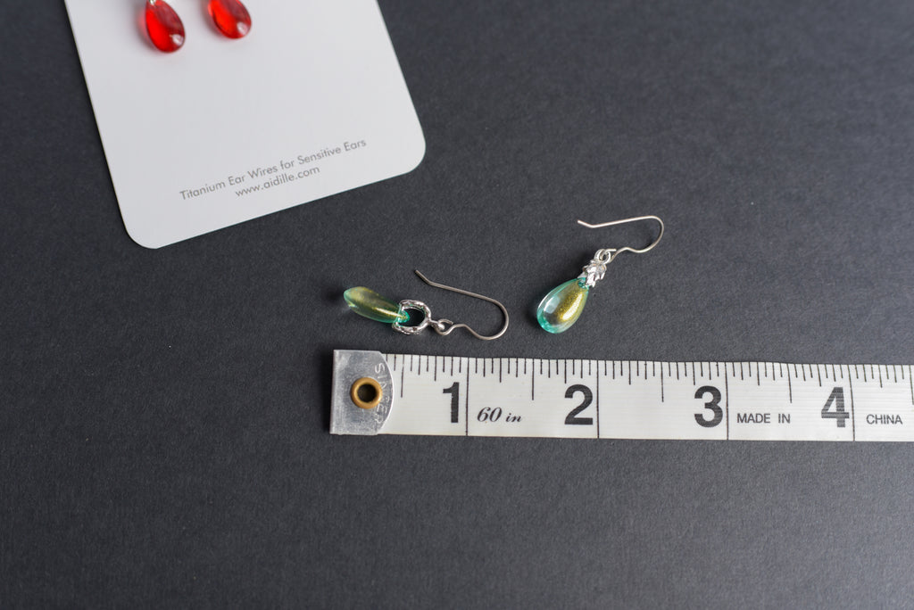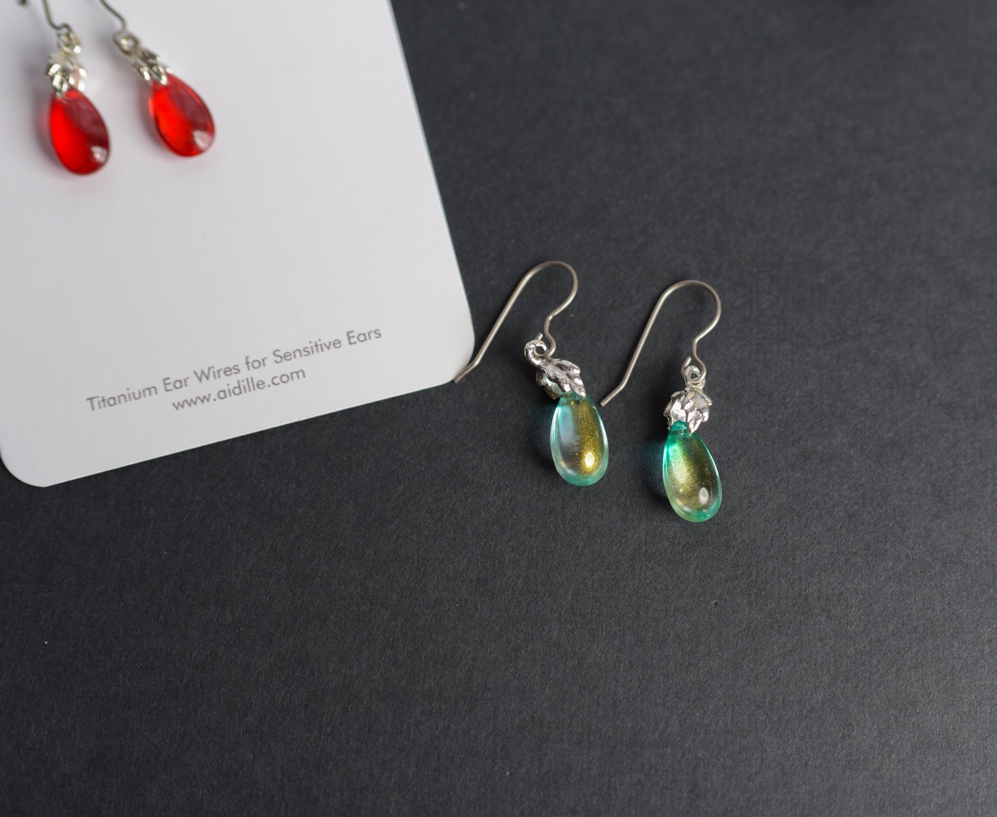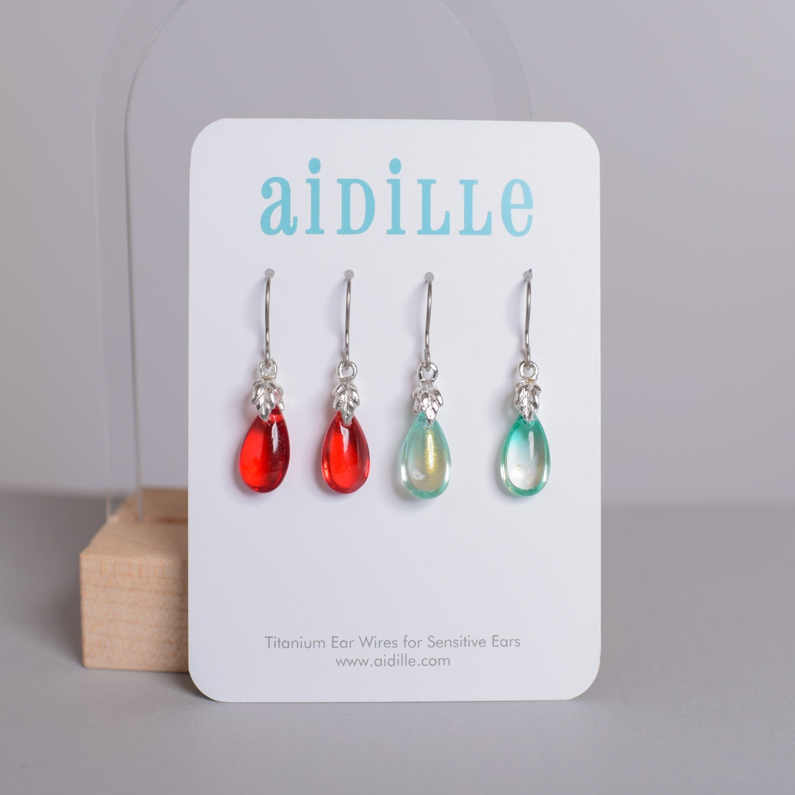Teardrop Dangle Earrings with Titanium Ear Wires in Mint and Red