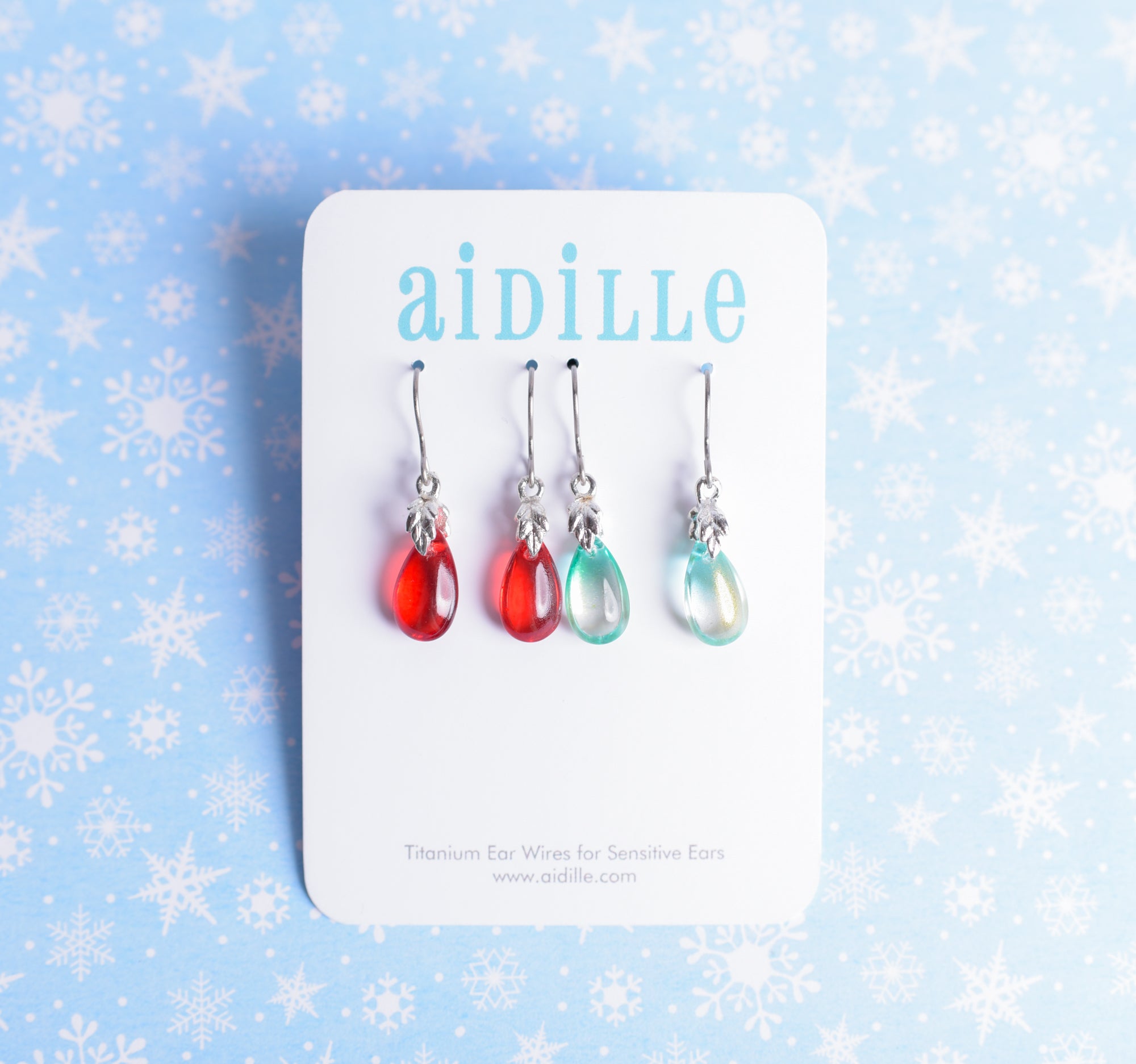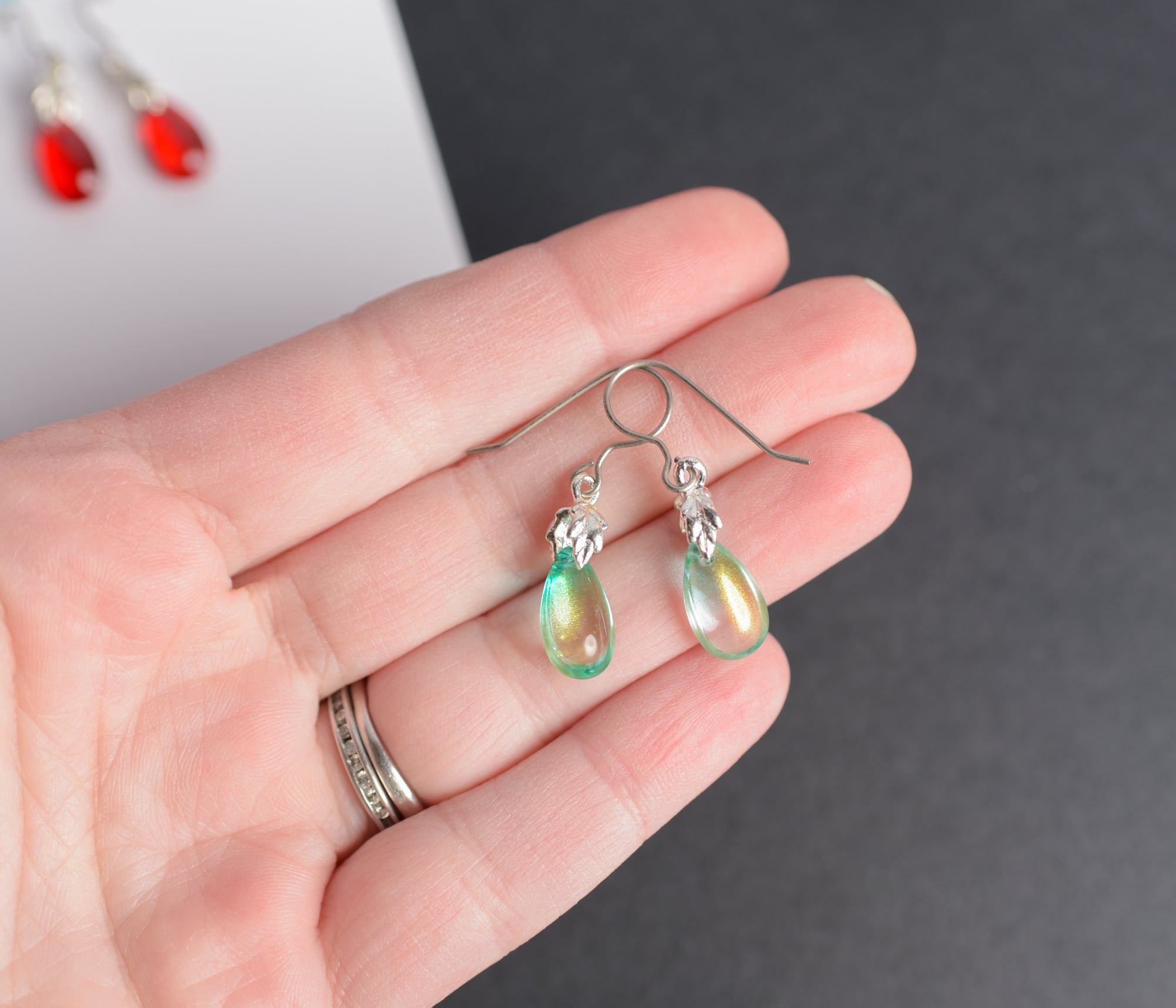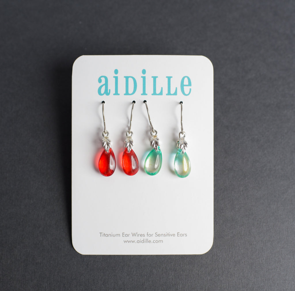 Teardrop Dangle Earrings with Titanium Ear Wires in Mint and Red