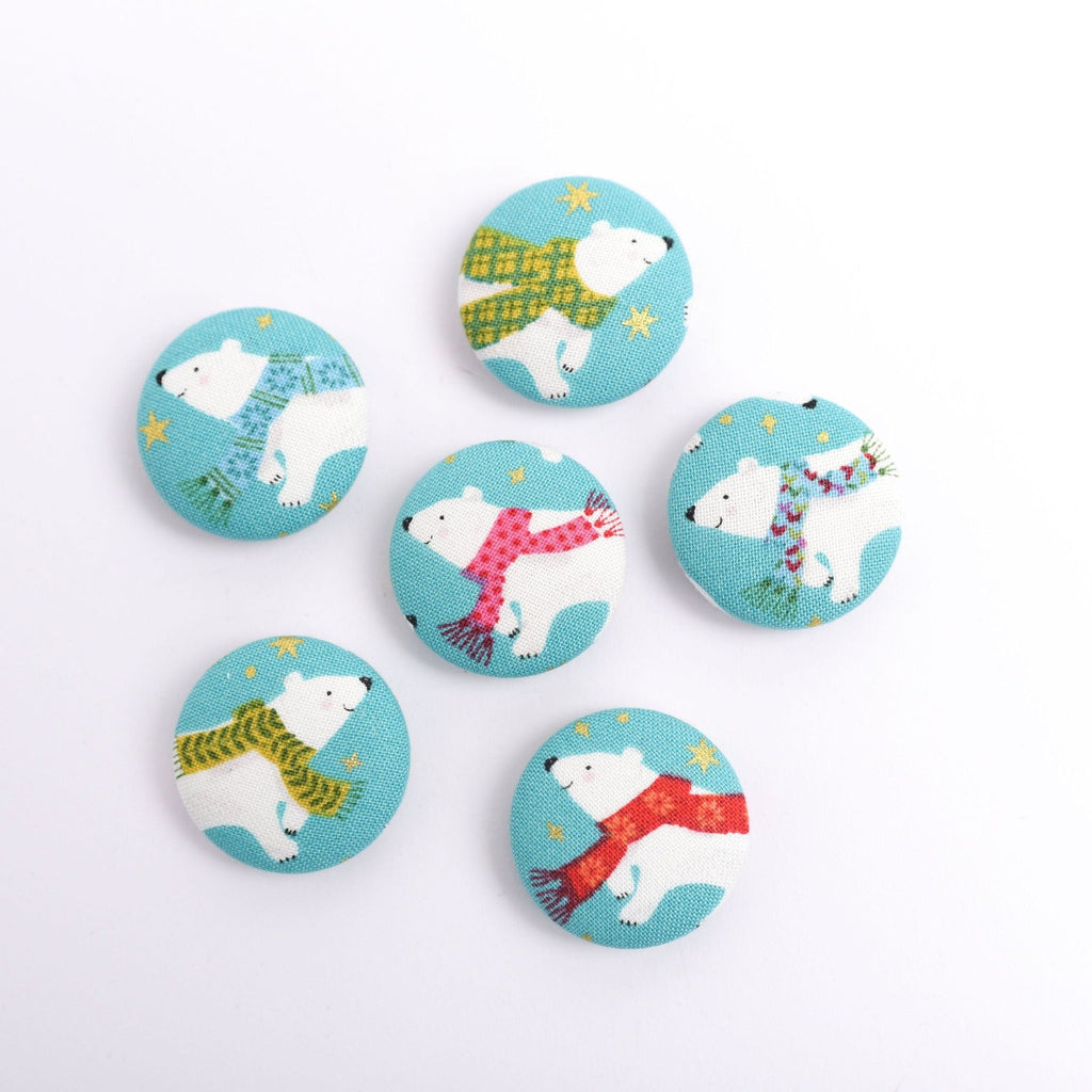 Polar Bear in Scarves Fabric Button Magnets- Set of 6