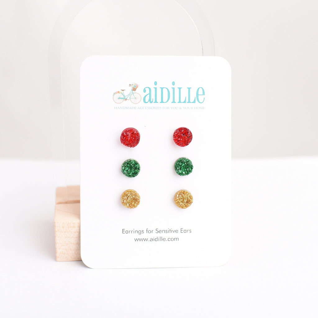 Mini Druzy Christmas Earring Multi Pack Trio with Titanium Posts