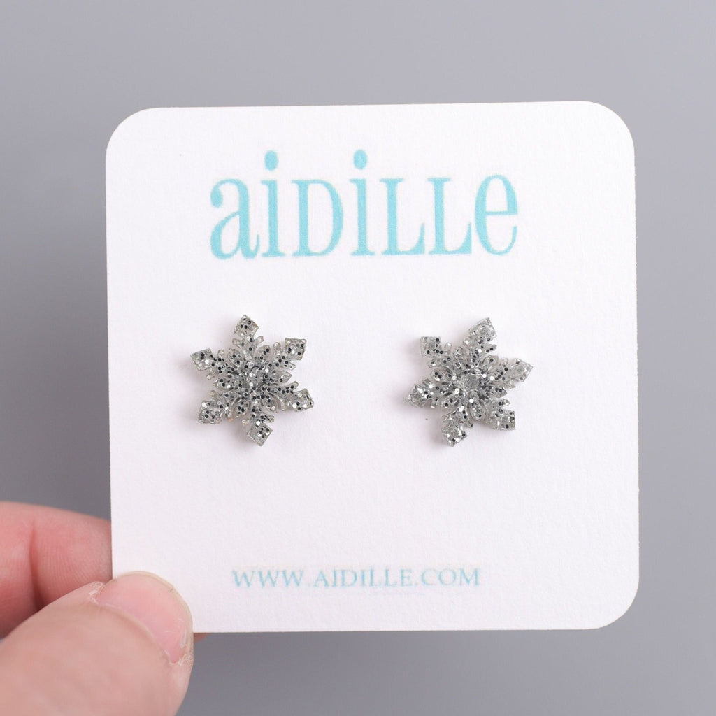 Snowflake Glitter Acrylic Earrings with Titanium Posts