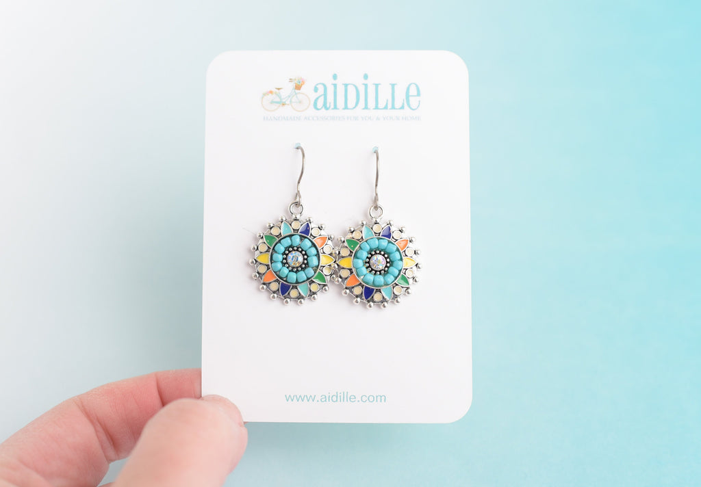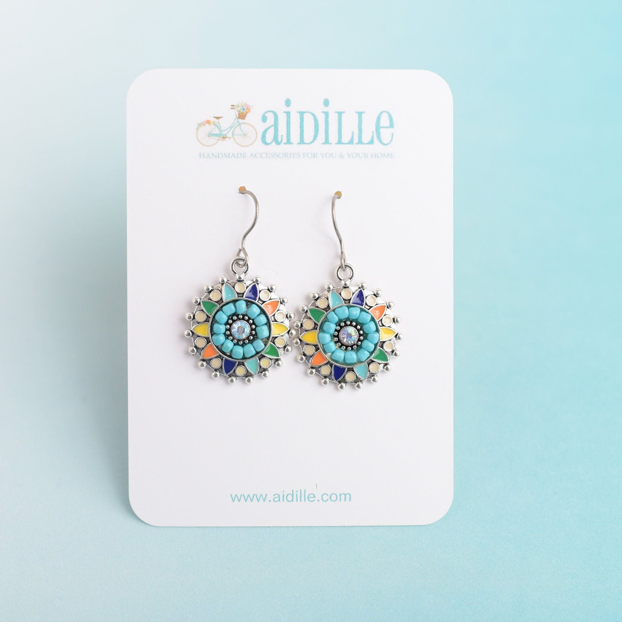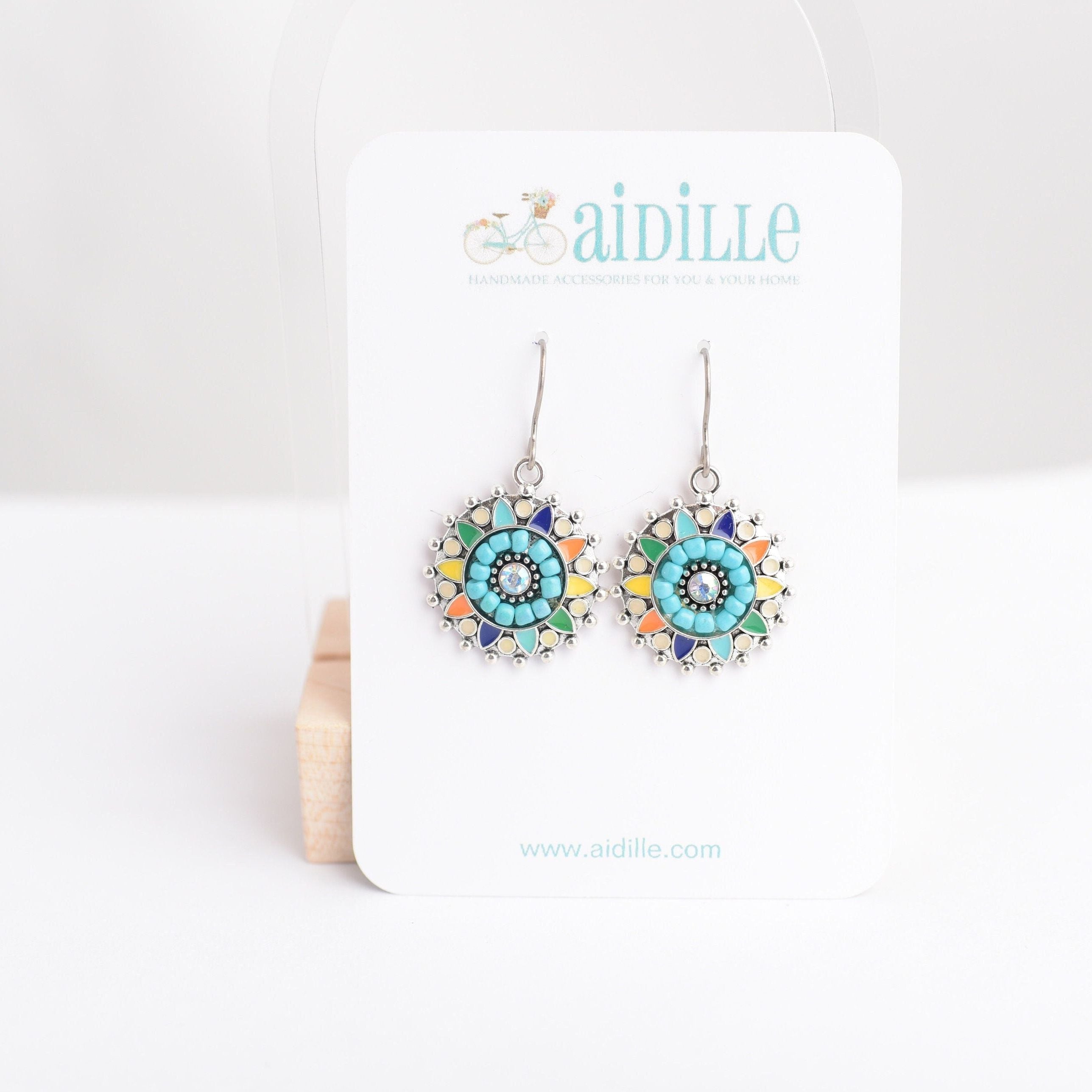 Mosaic Circle Dangle Earrings with Titanium Ear Wires