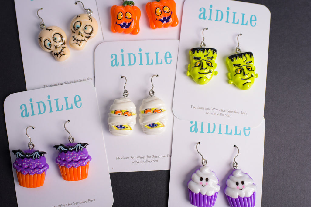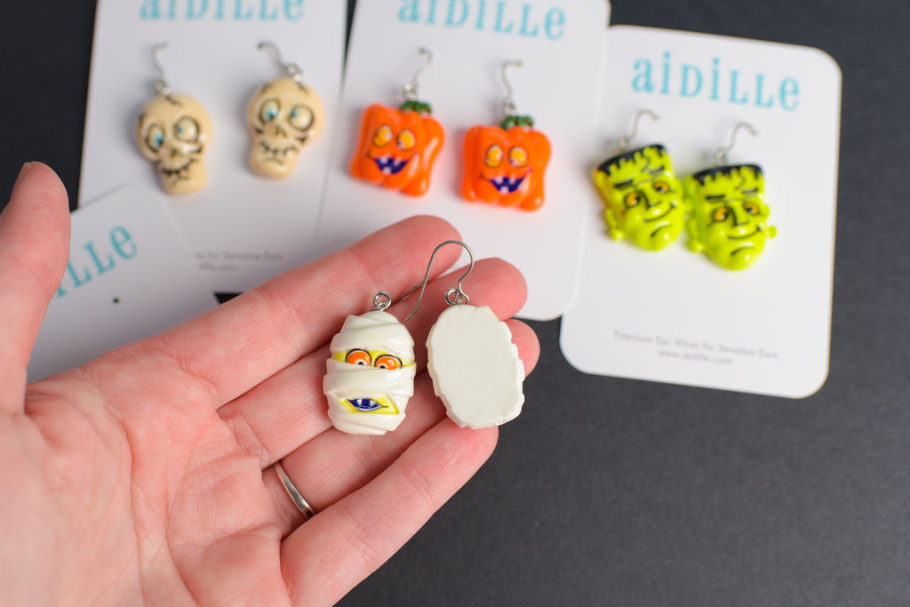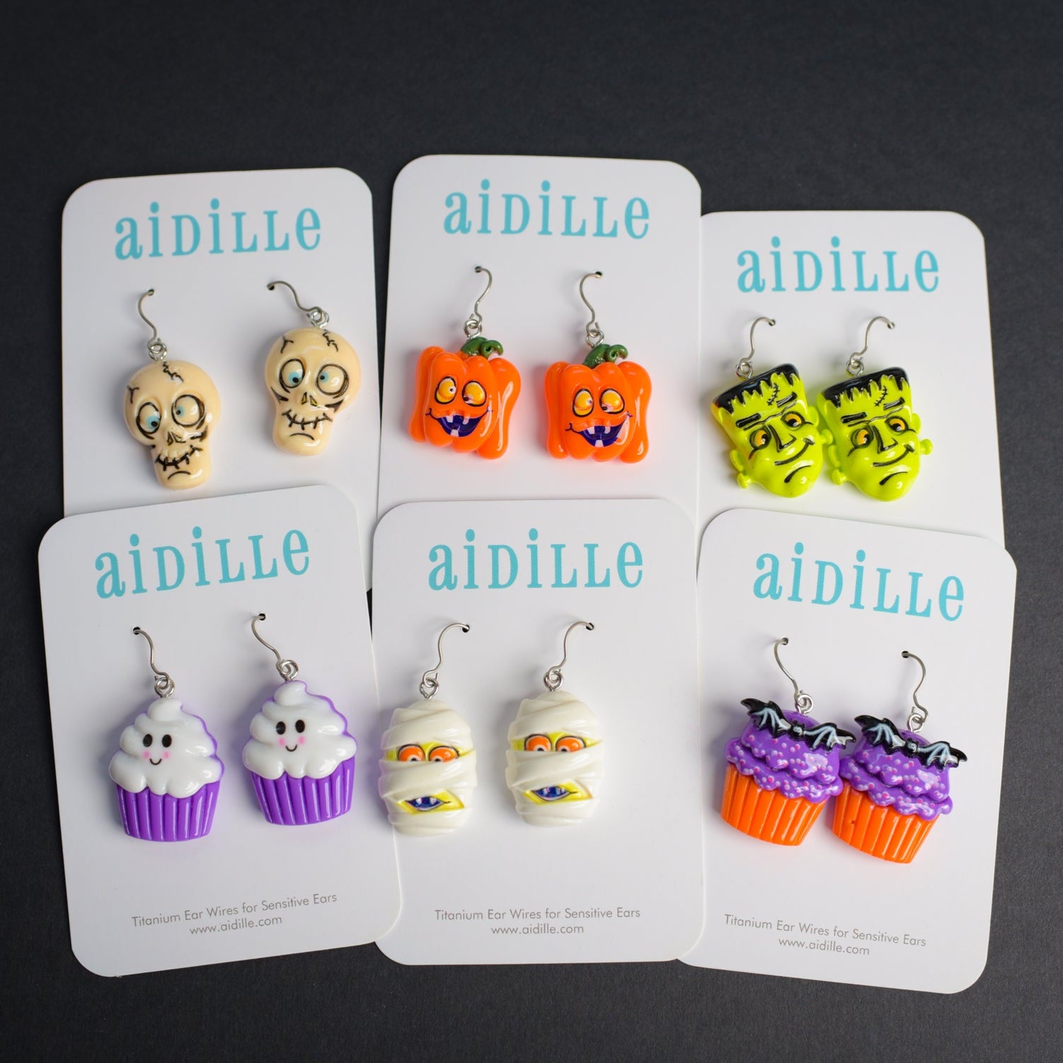 ONE pair of novelty Halloween resin dangle earrings- Limited Quantities!