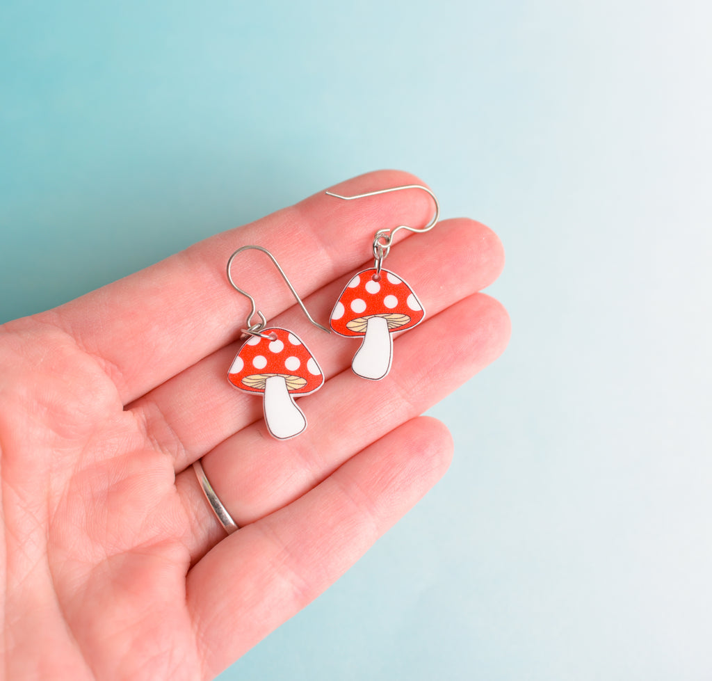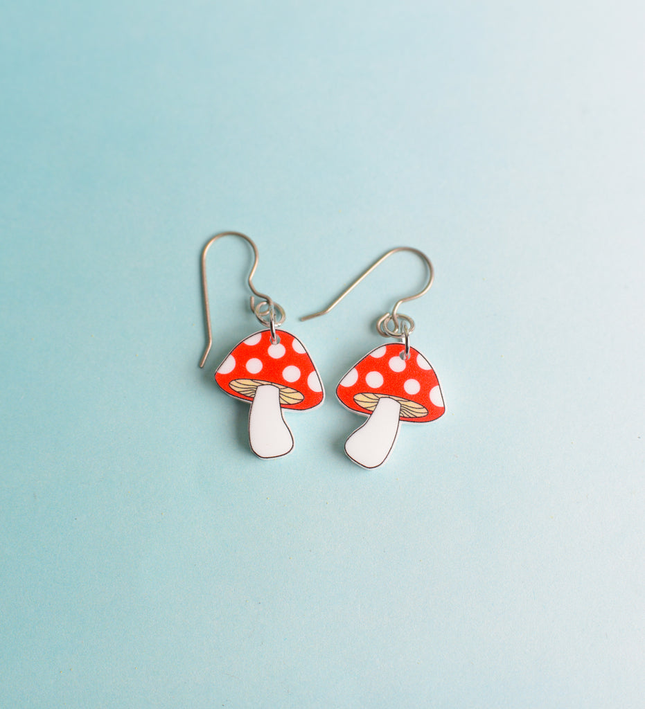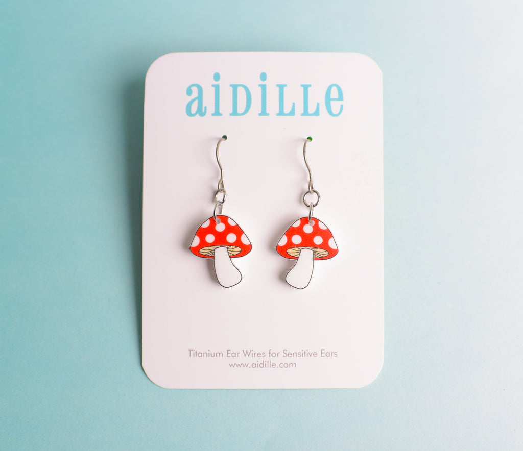 Polka Dot Mushroom Dangles with Titanium Ear Wires