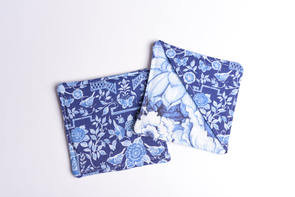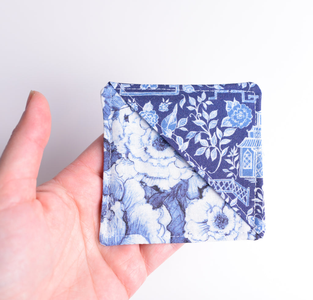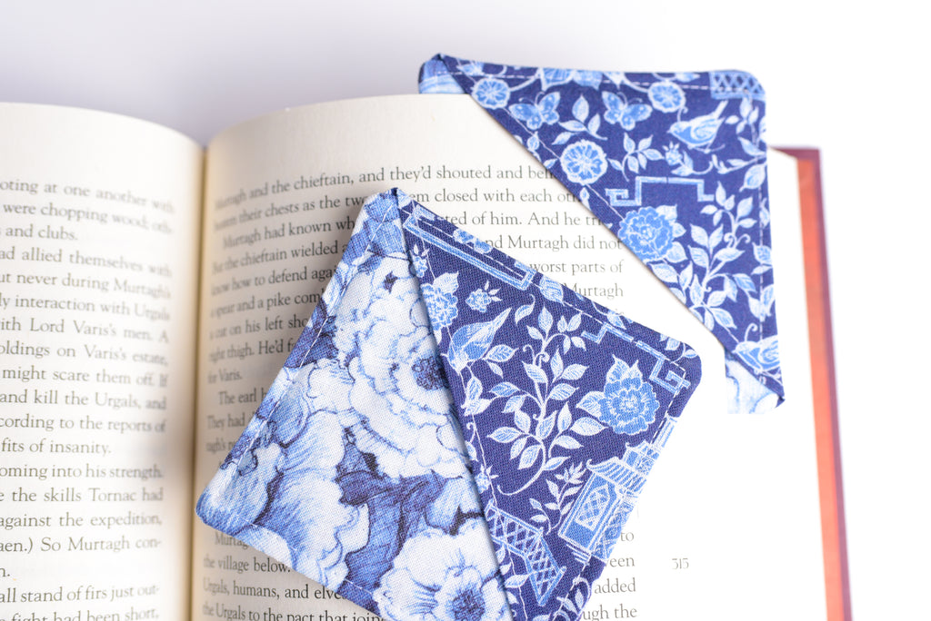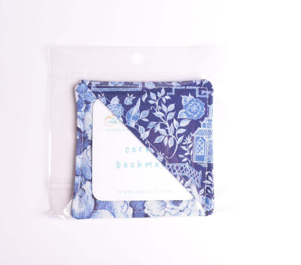 This exclusive cloth fabric bookmark, hand crafted using fabric by designer Susan Winget, features a beautiful blue floral pattern from the Chinoiserie collection. Made with 100% cotton, each bookmark measures approximately 3.5" square and is individually unique due to the handmade process and fabric placement. Top stitched for durability and design. The accompanying image displays both the front and back of two different bookmarks for a comprehensive view. You will receive ONE bookmark.