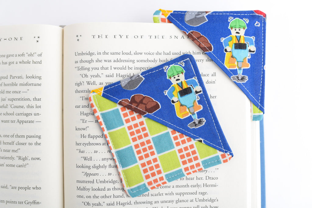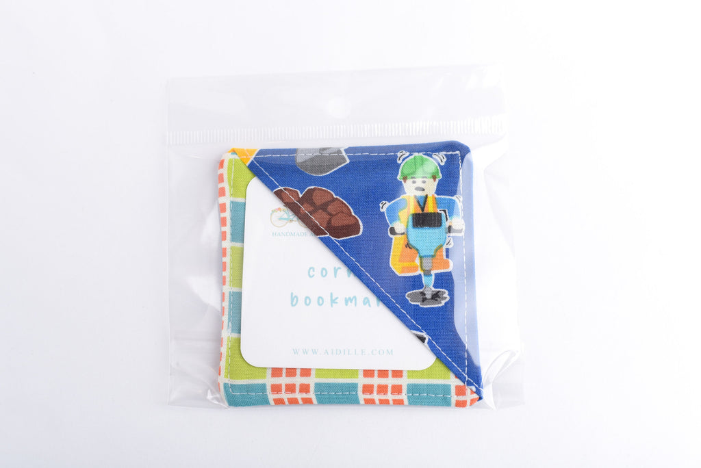 Construction Man & Block Handmade Fabric Corner Bookmark