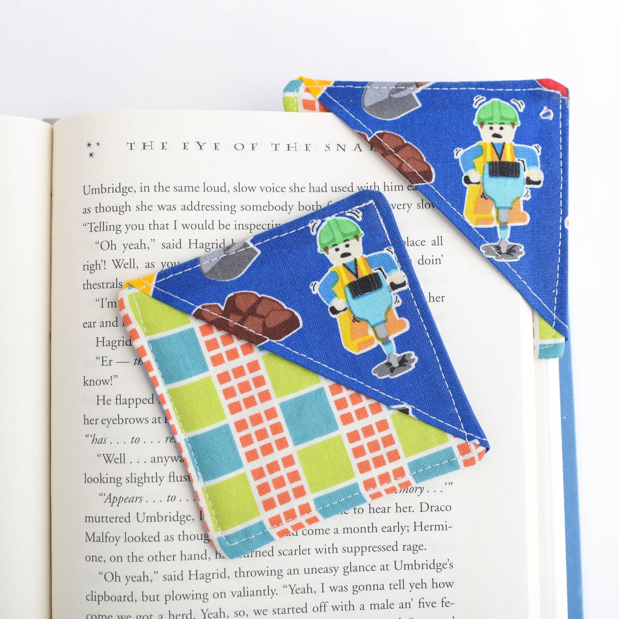 ONE handmade jack hammer construction man fabric corner bookmark