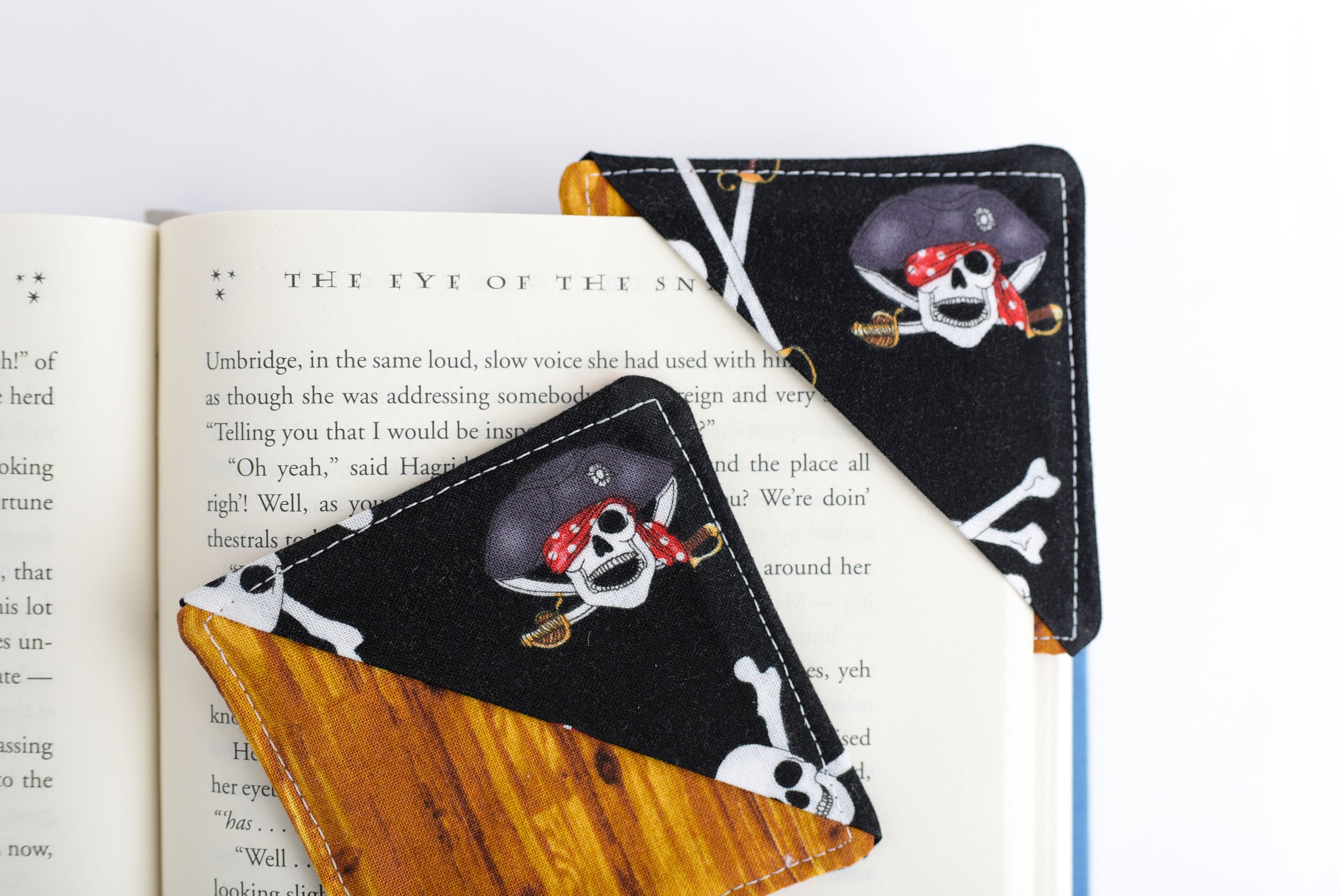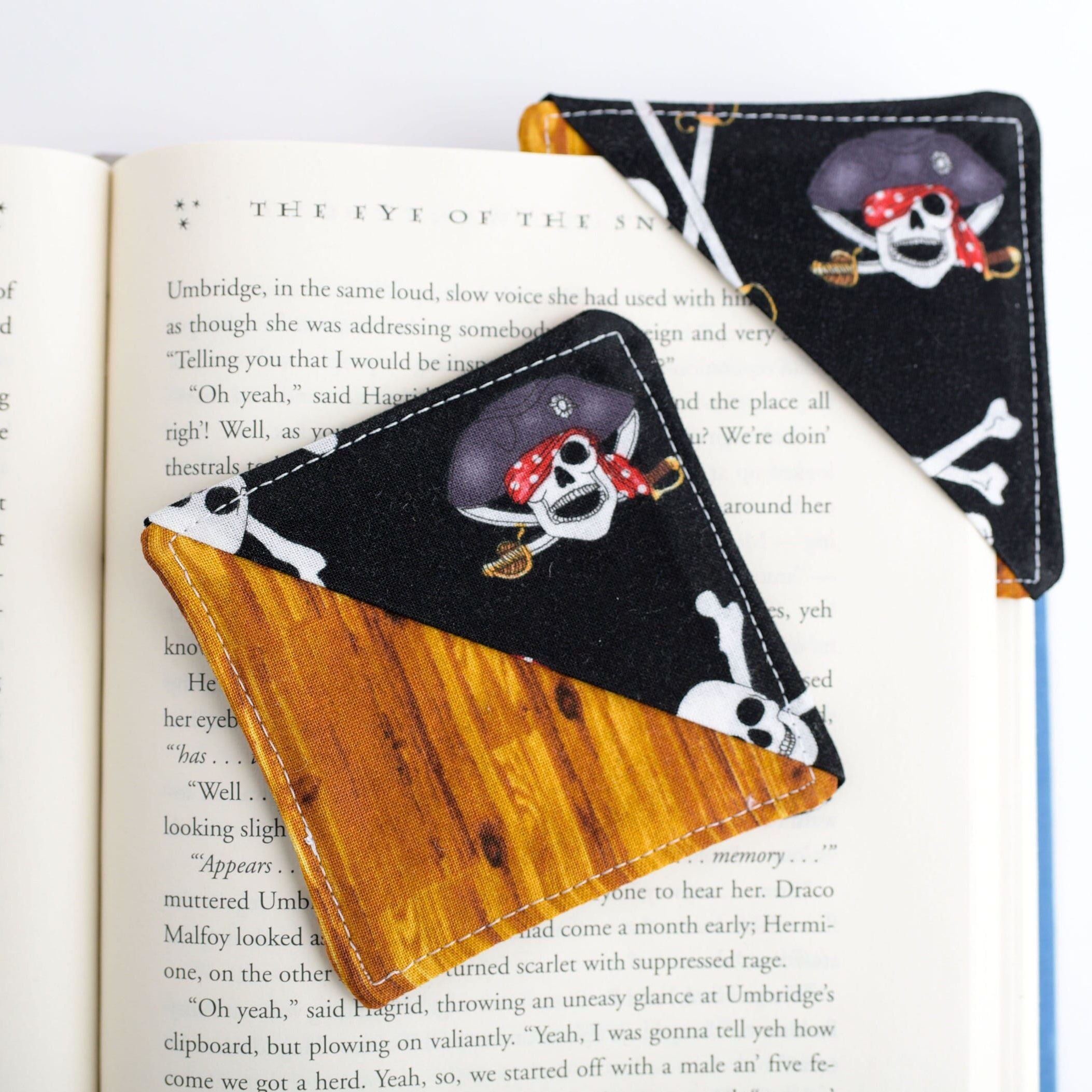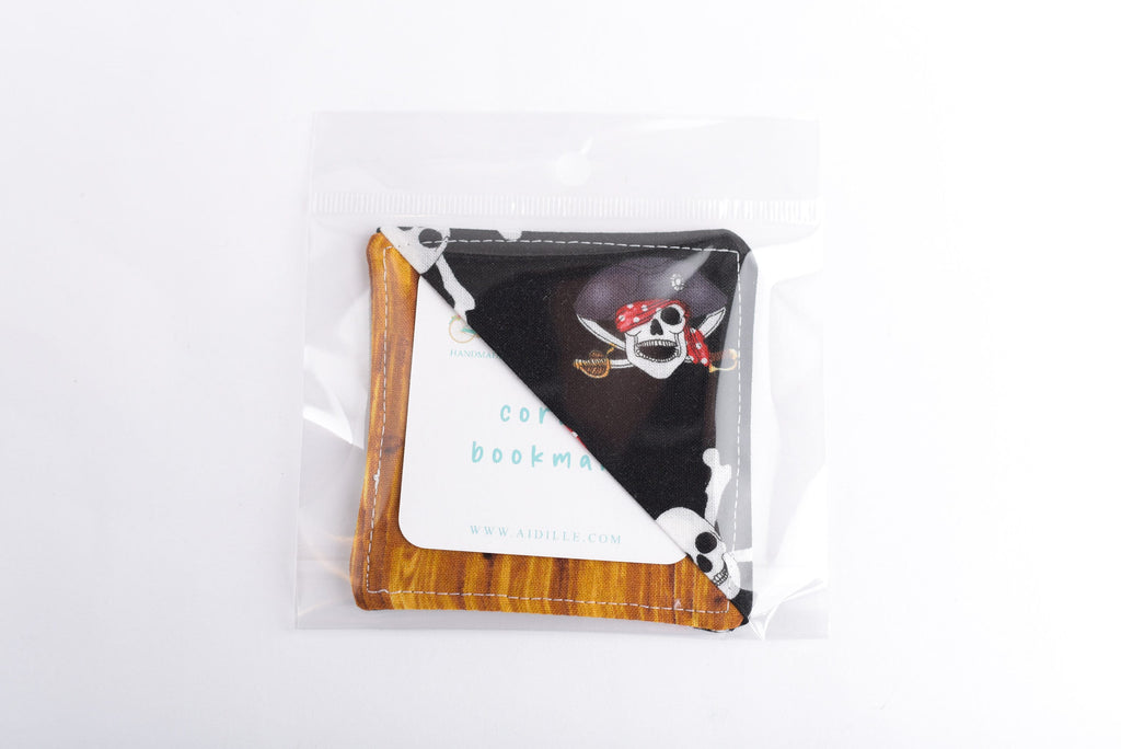 ONE pirate and wood themed fabric corner bookmark
