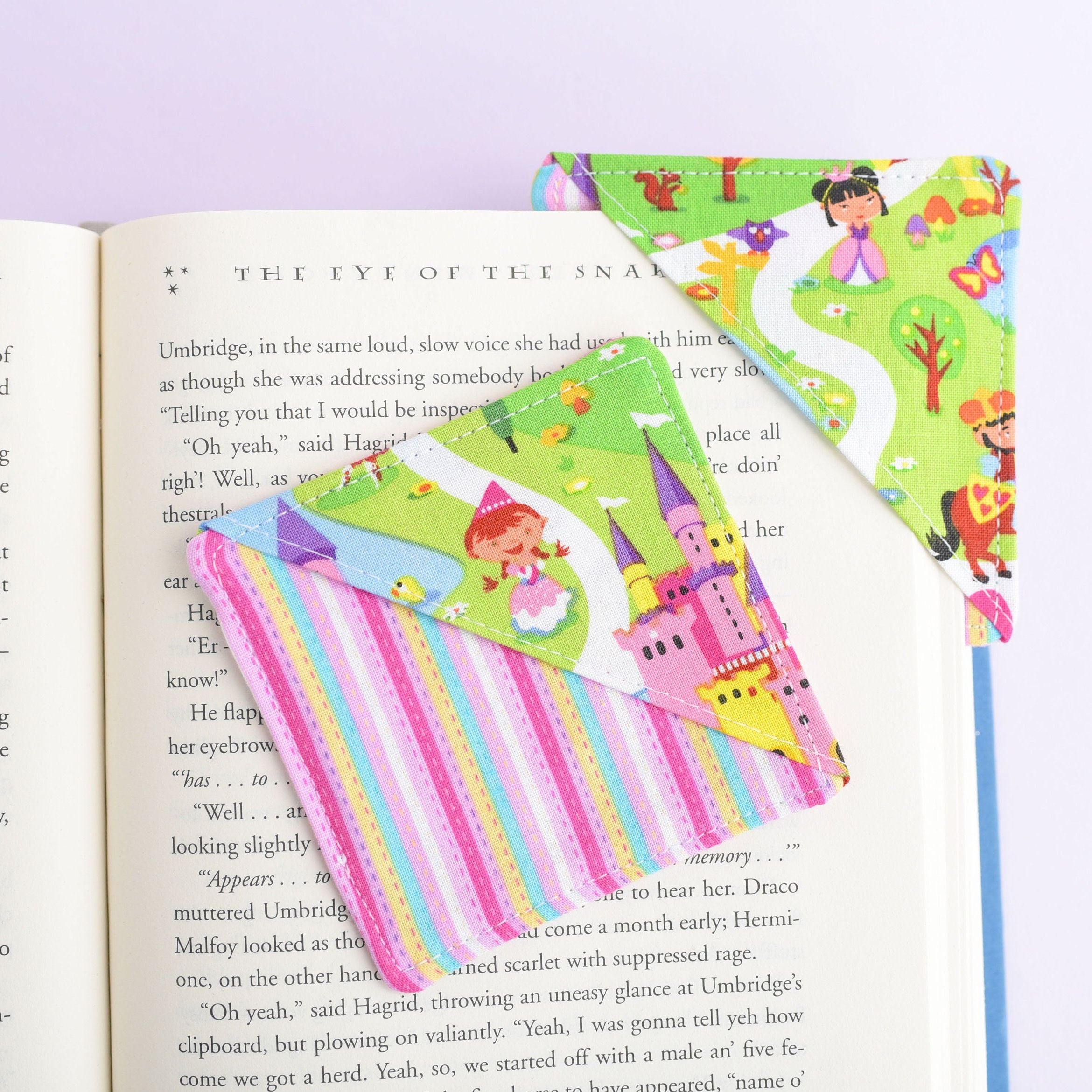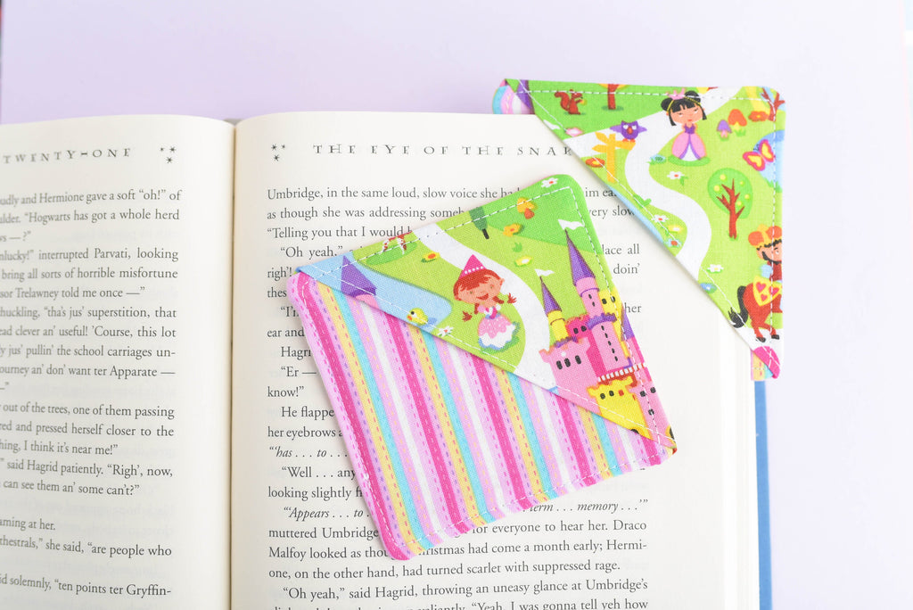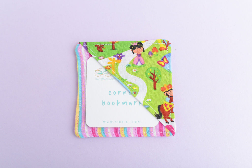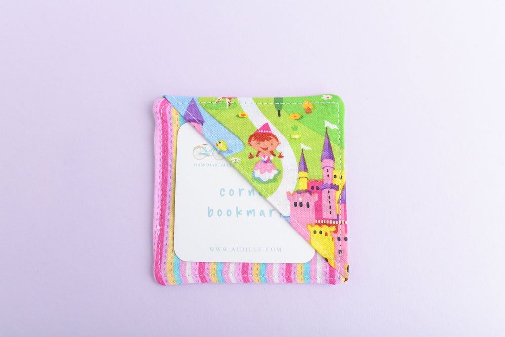 Pretty Princess & Rainbow Stripe Handmade Fabric Corner Bookmark