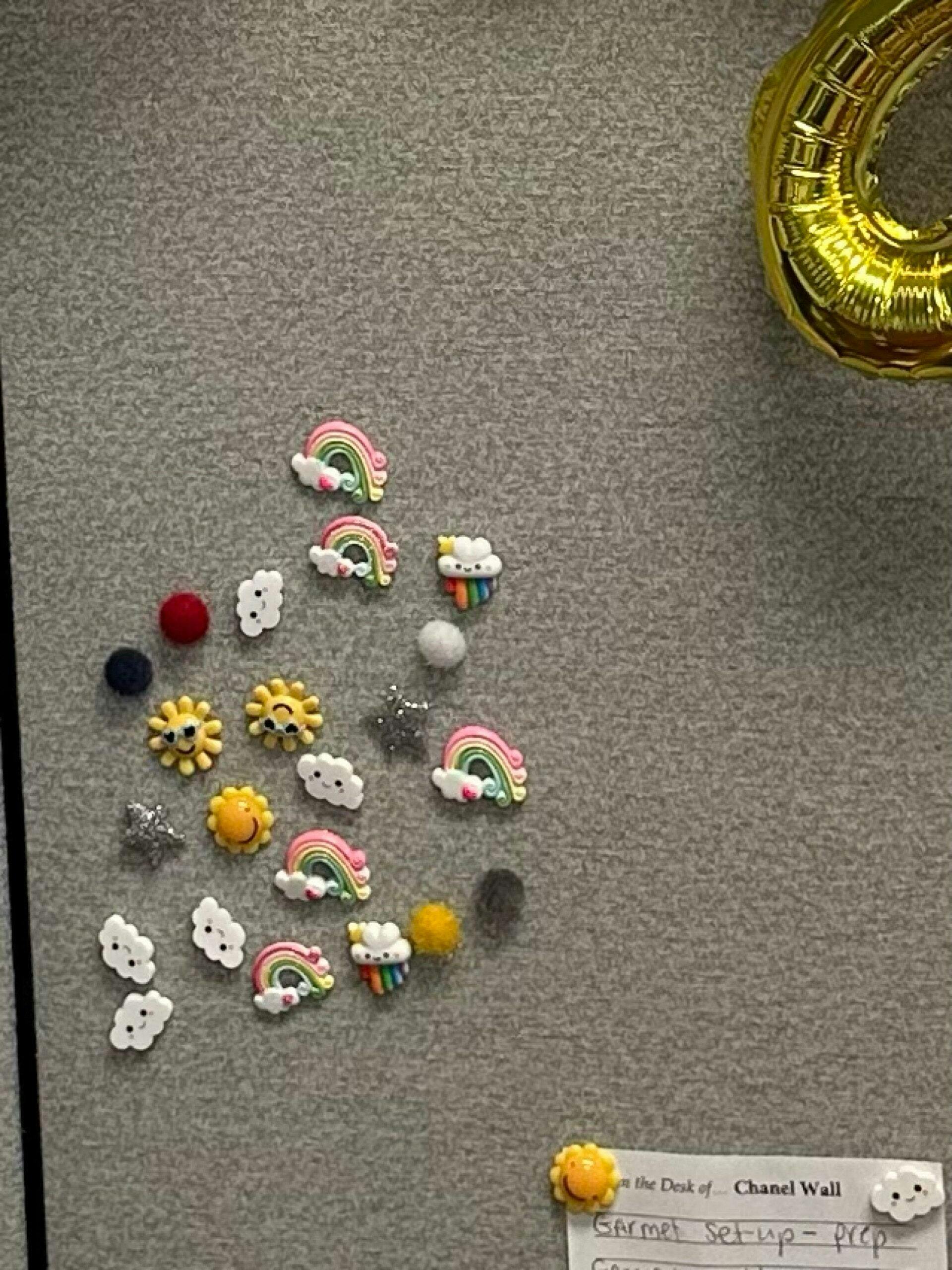 Set of 5 resin kawaii rainbow cloud magnets to dress up your refrigerator, locker, filing cabinet, or magnetic white board