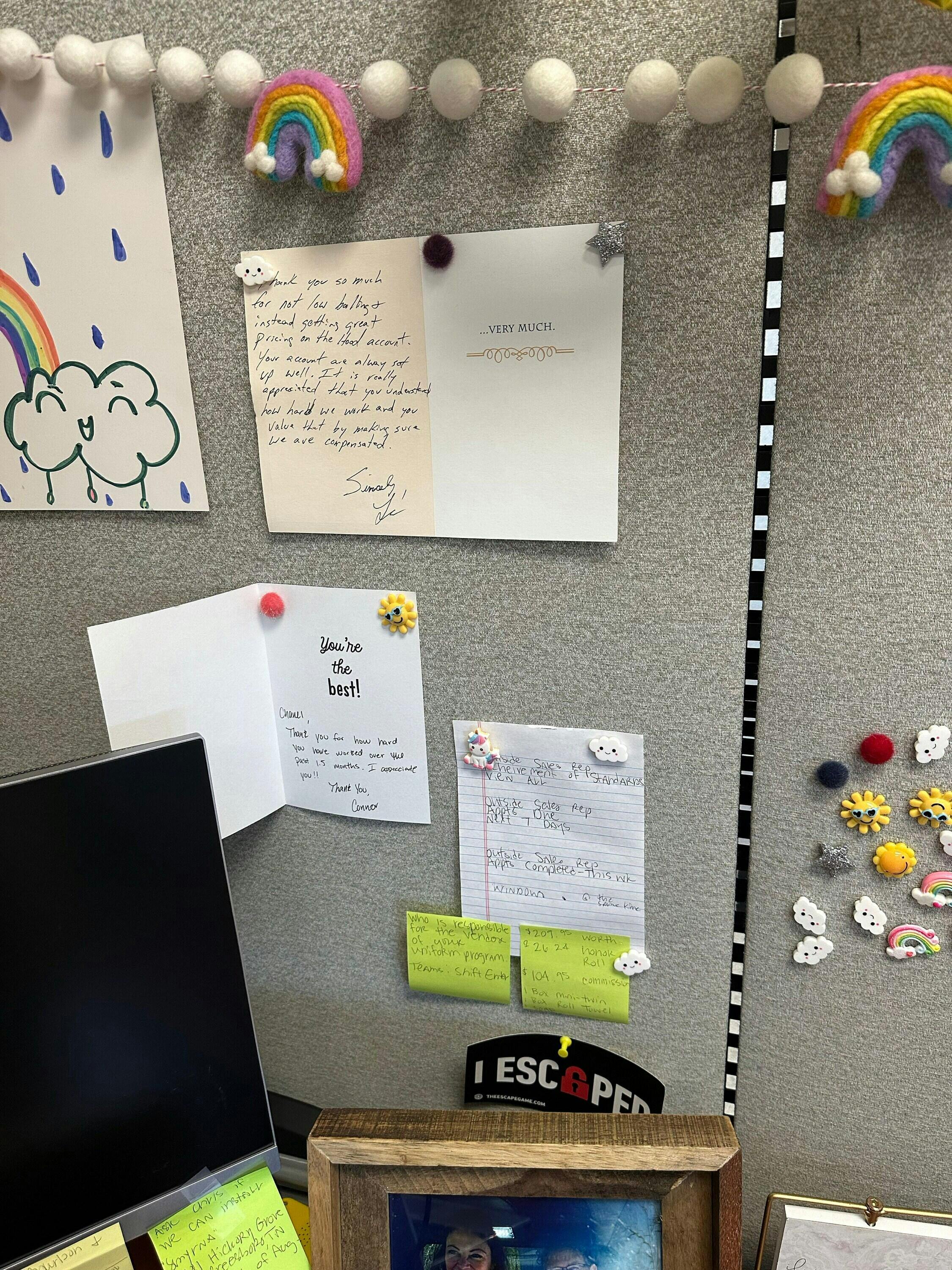 A fun and colorful push pin set with kawaii clouds, happy suns, silver glitter stars, and colorful rainbows