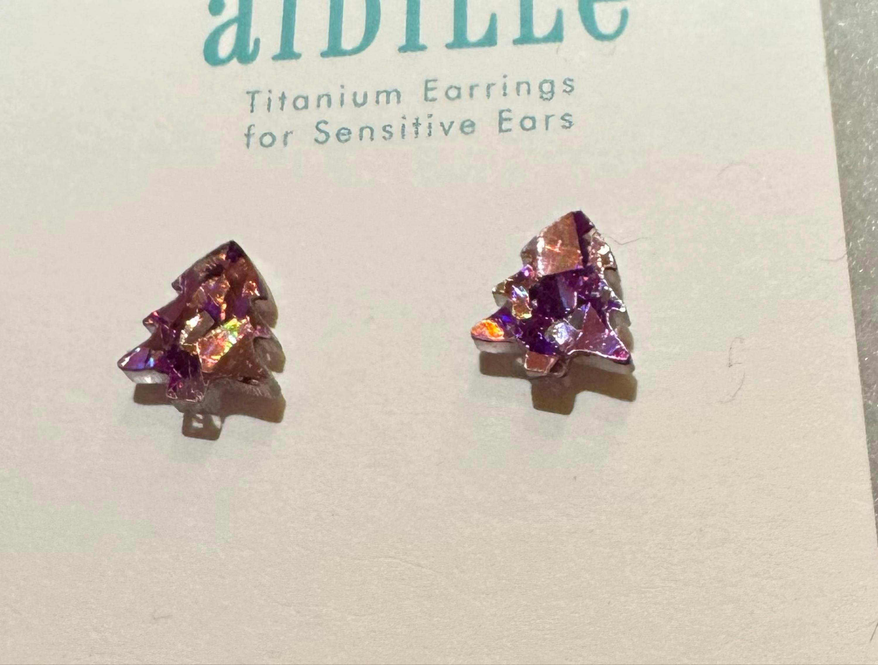 Chunky Glitter Christmas Tree Earrings with Titanium Posts- Several Colors