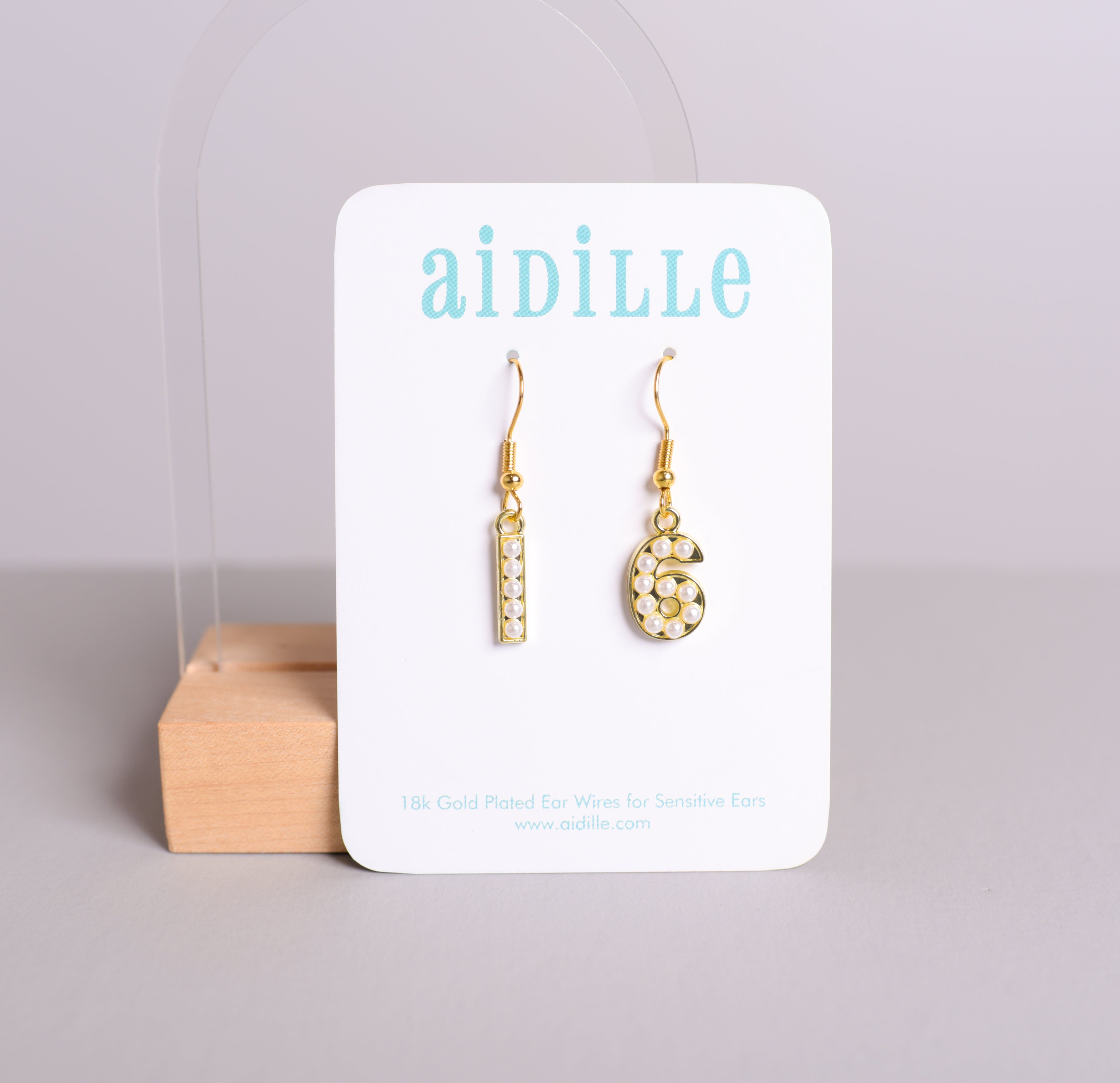 Celebrate her special 16th birthday with beautiful gold colored earrings in the number one and six with pearl or details! Earrings are hand assembled using commercial zinc alloy gold colored charms and hypoallergenic 18k plated gold ear wires. Earrings measure about 1.5" tall including the ear wires. She can also wear them again when she's 61! ;)