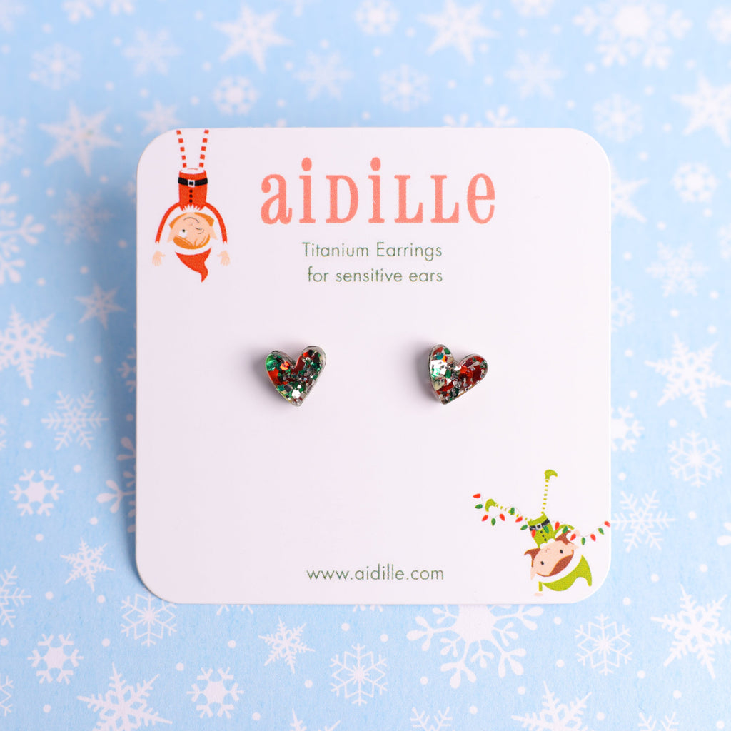 Mini 8mm Red and Green Heart Earrings with Titanium Posts