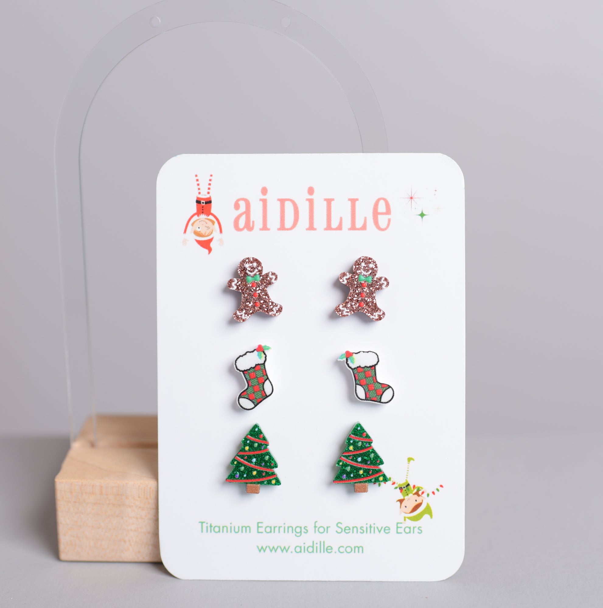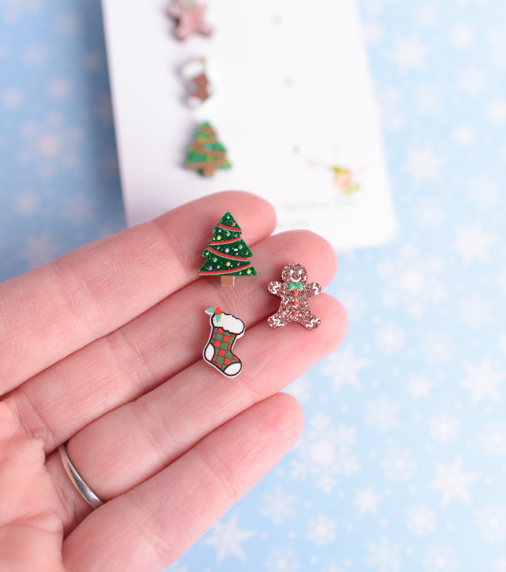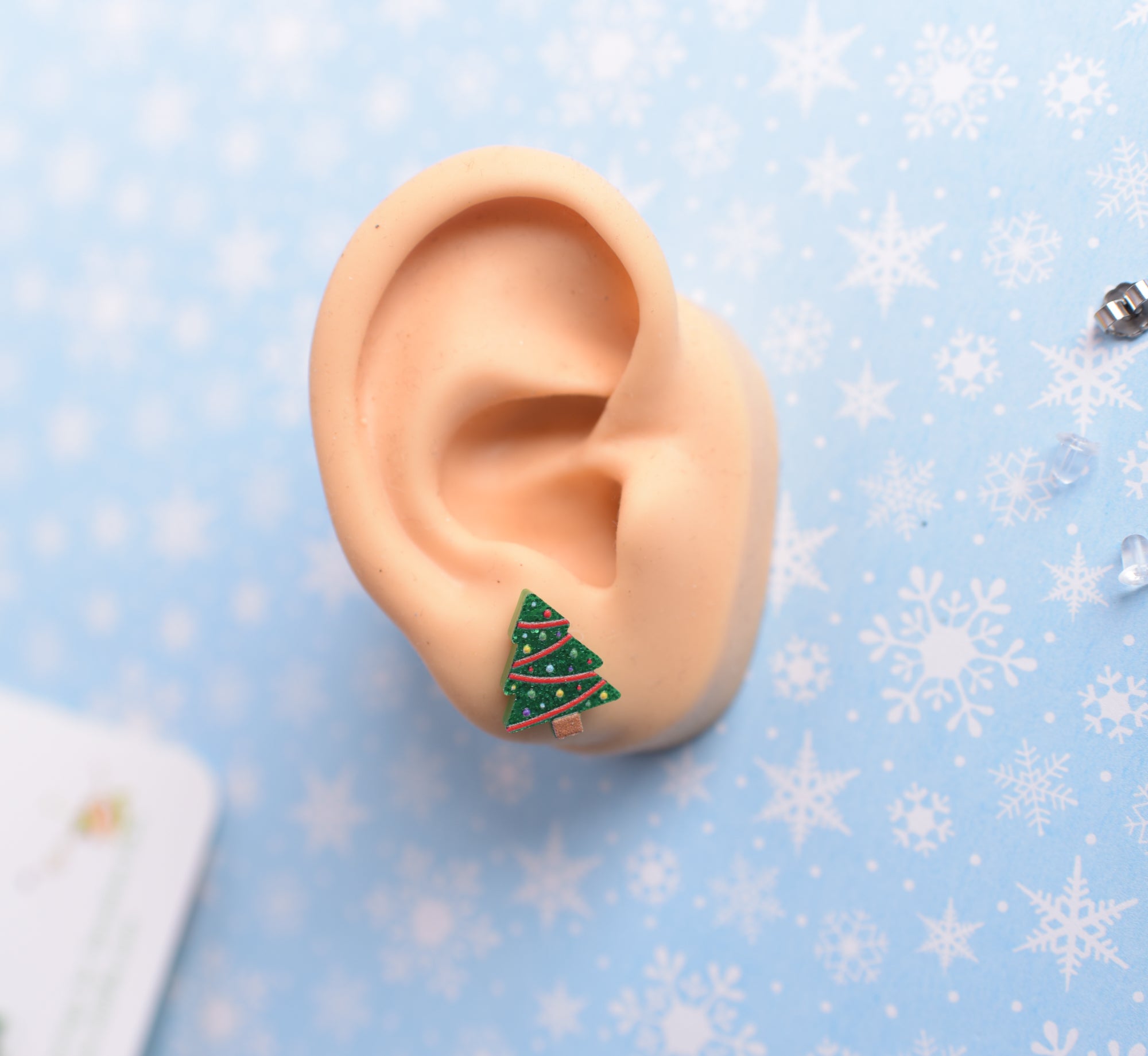 Made from US made laser cut acrylic charms, hypoallergenic titanium studs, and both silicone AND stainless steel backings for choice. Presented on a limited edition Aidille holiday earring card- perfect for gift giving!