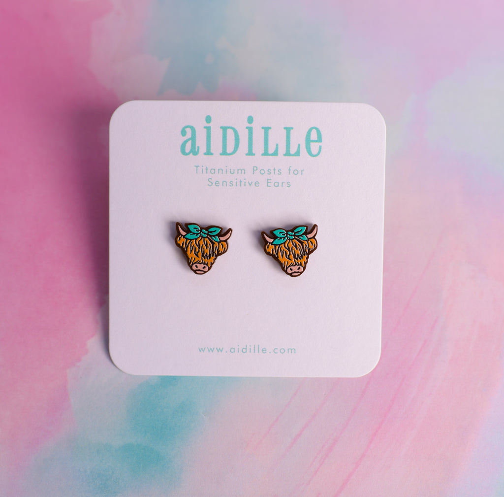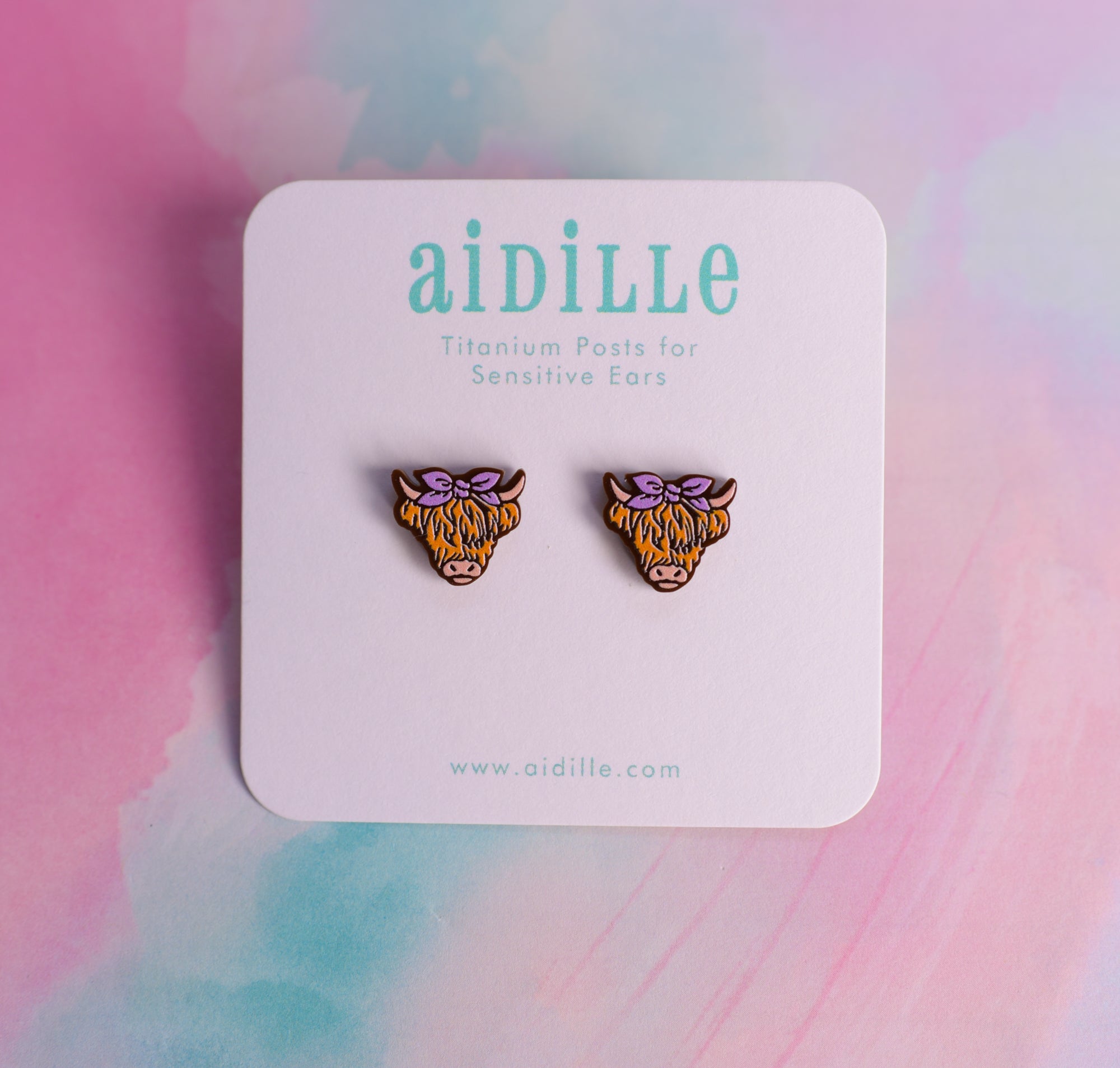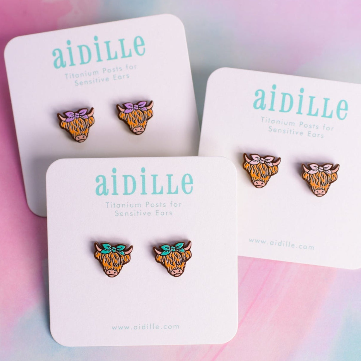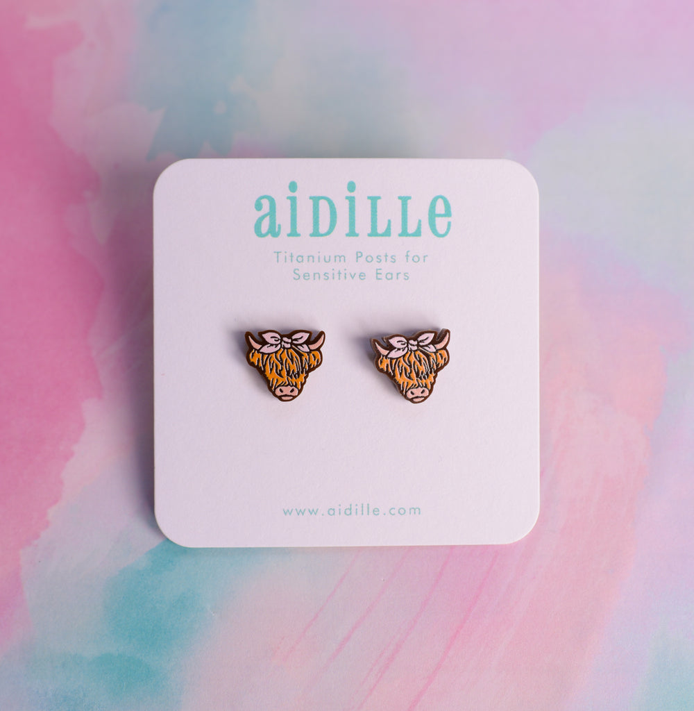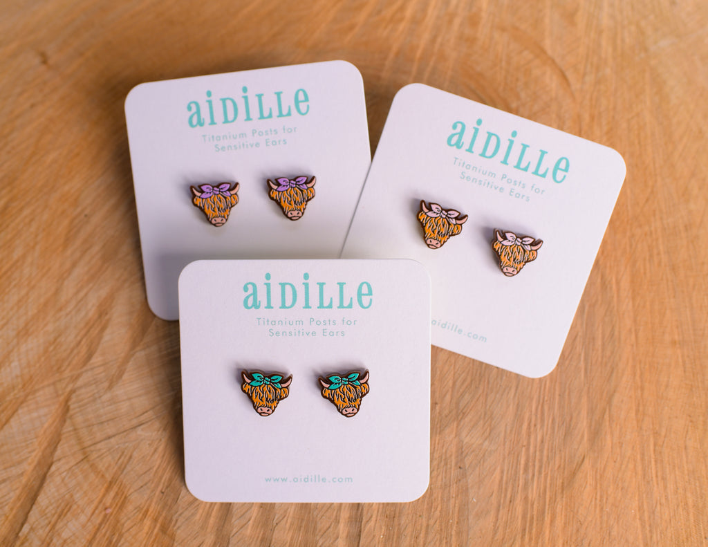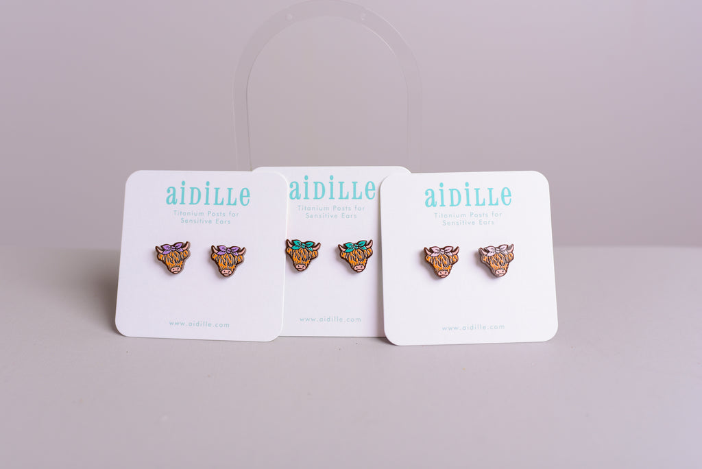 Acrylic Highland Cow Earrings with Titanium Posts- Choose from 3 Colors