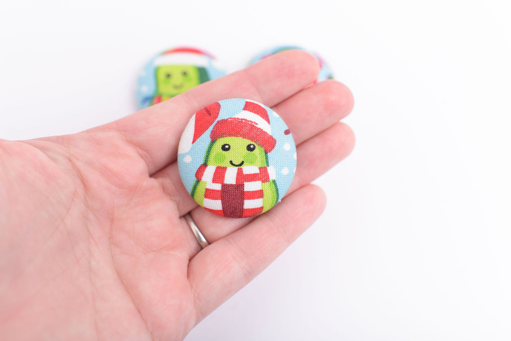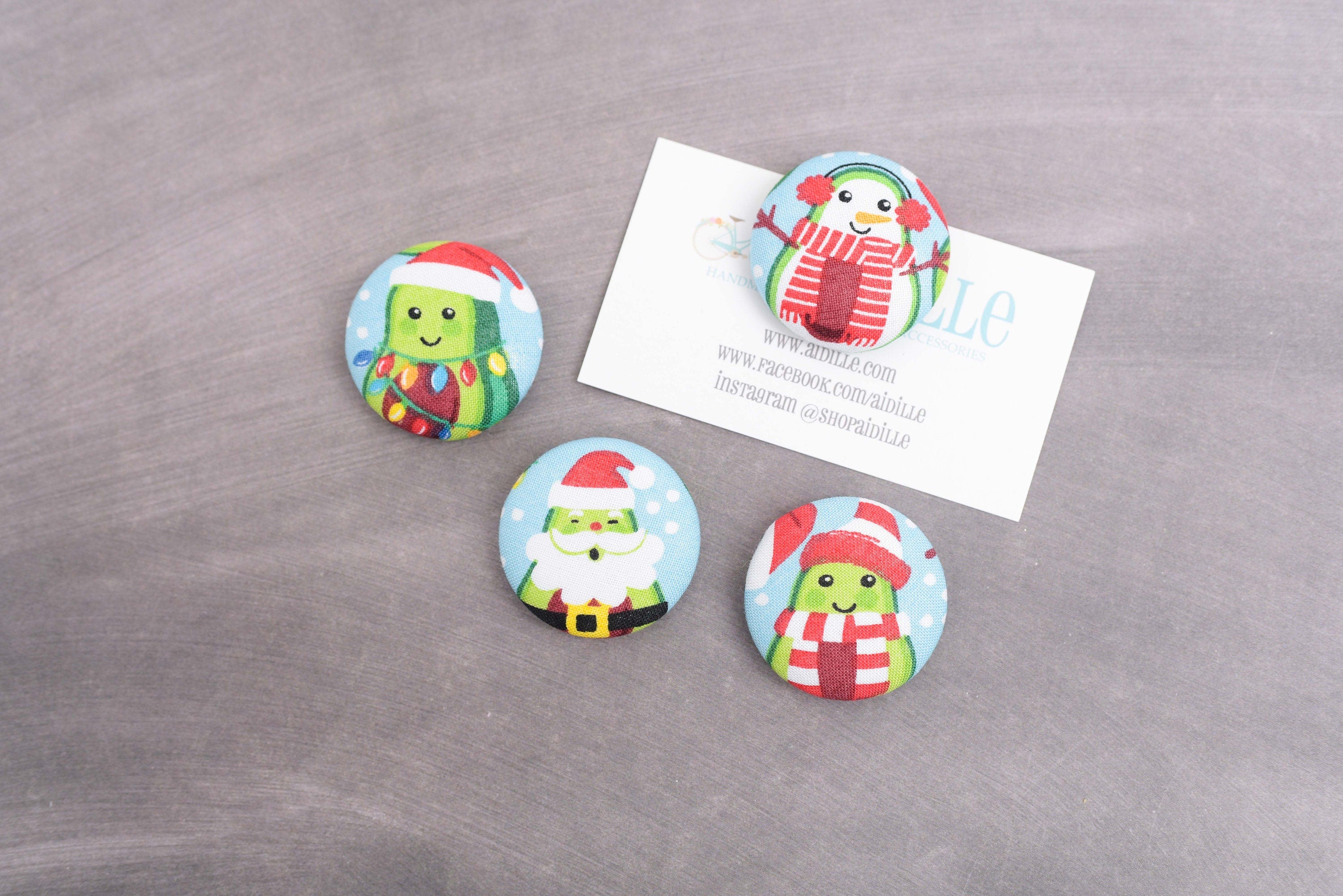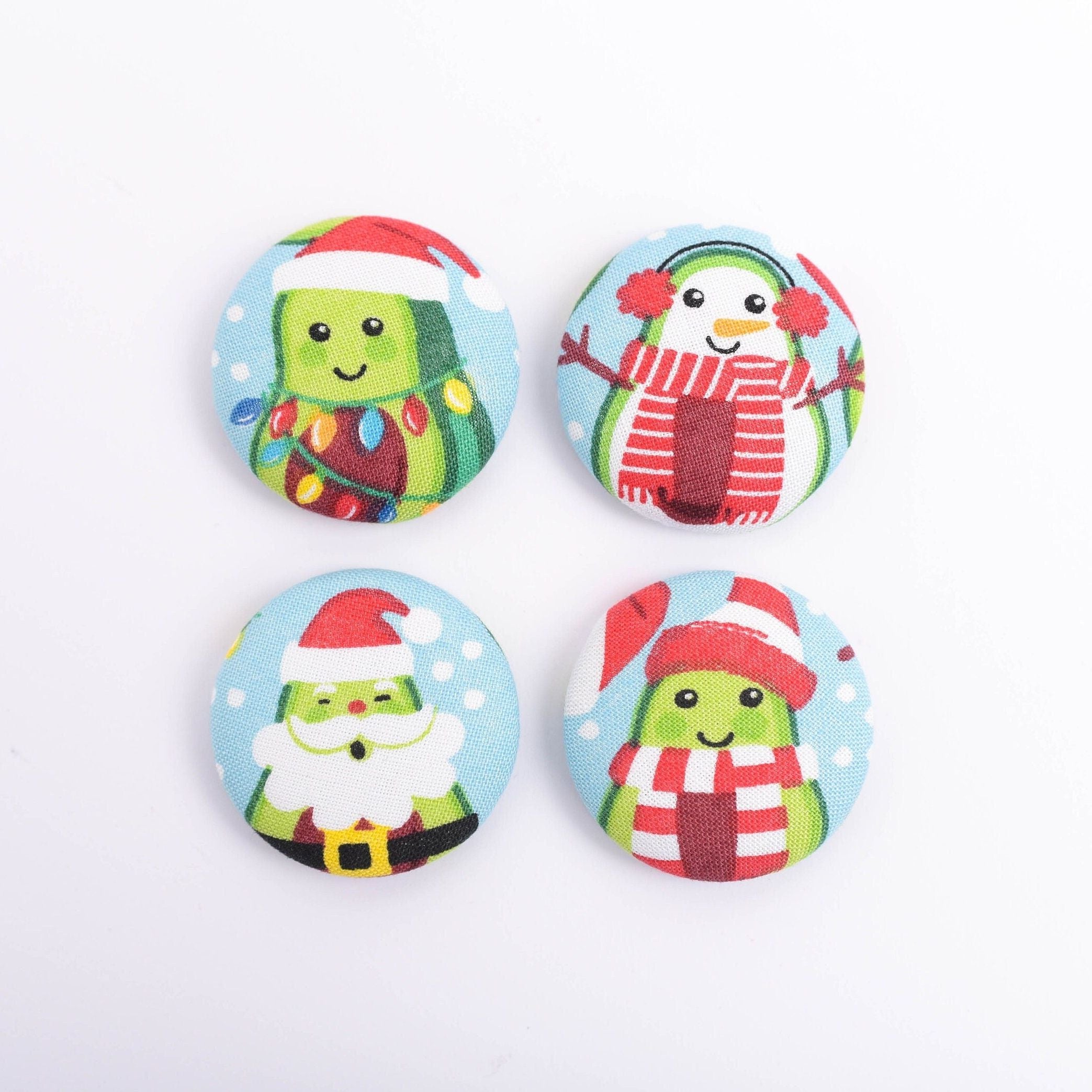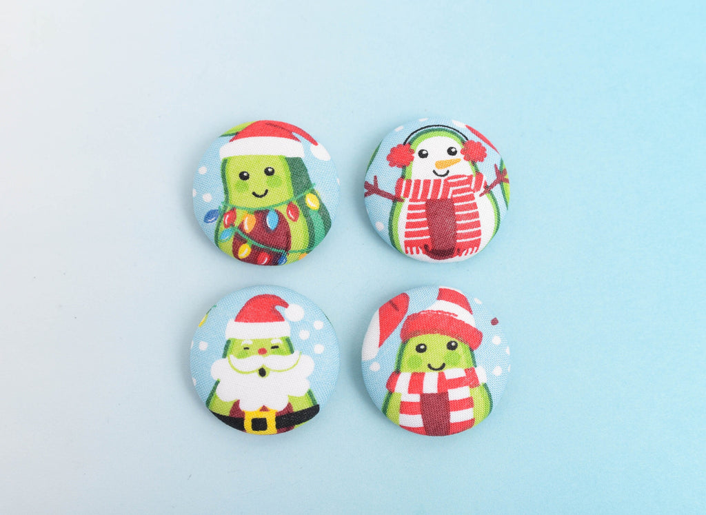 Set of 4 fun assorted holiday avocado fabric button magnets