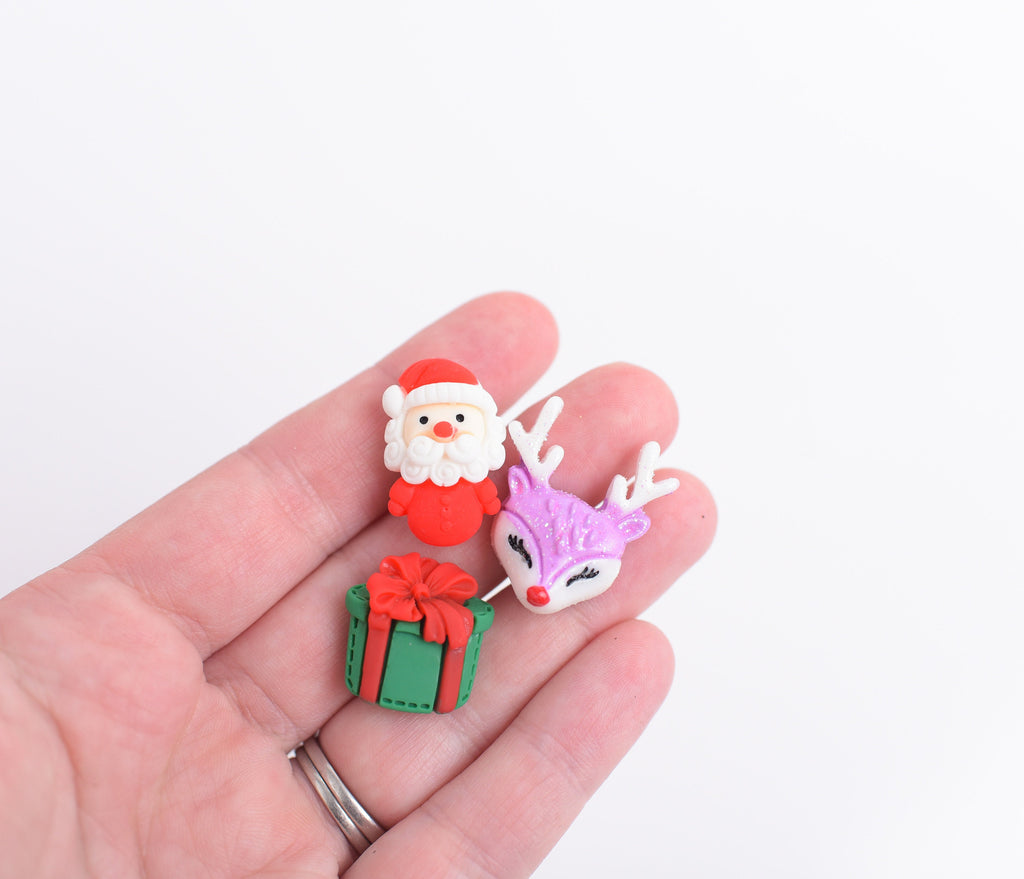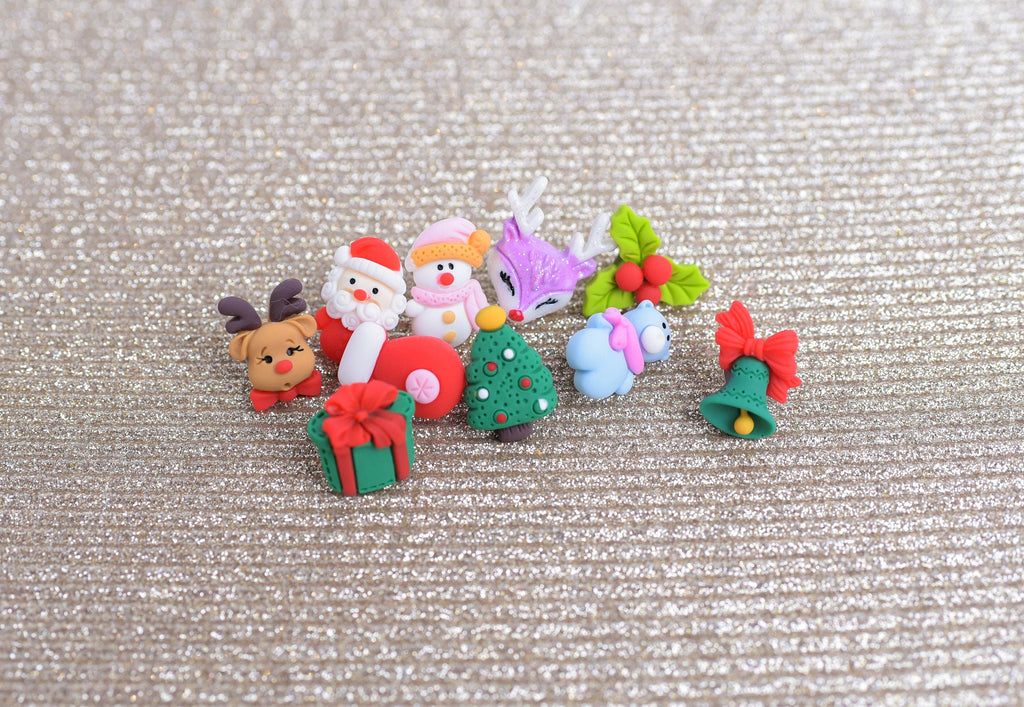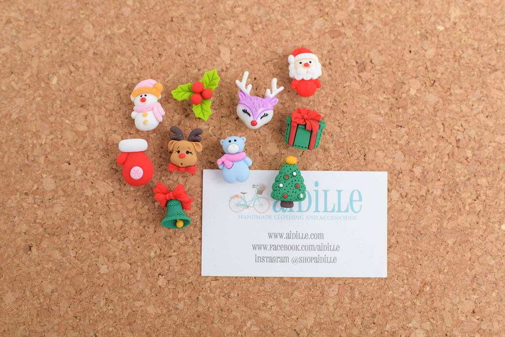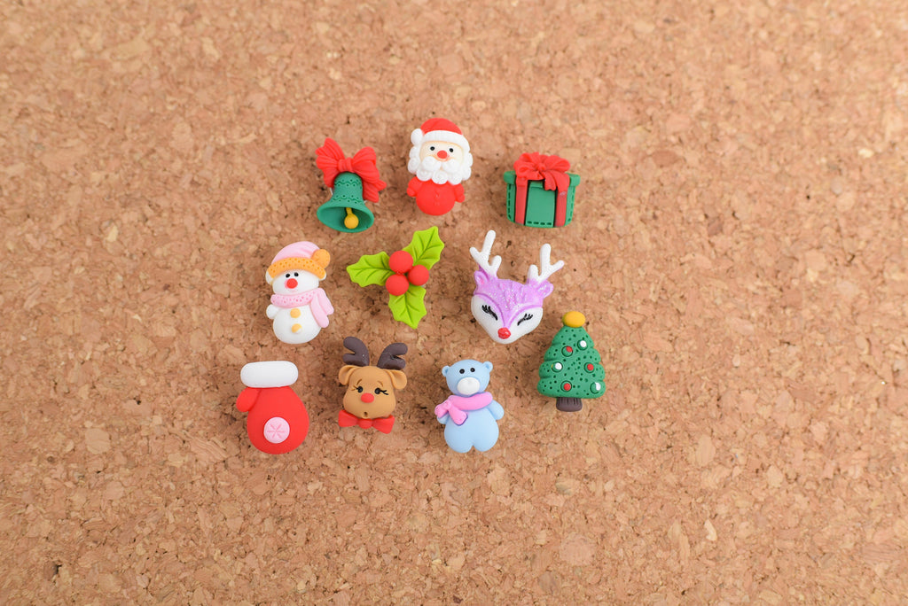 This adorable set of decorative thumb tacks features assorted Christmas characters.