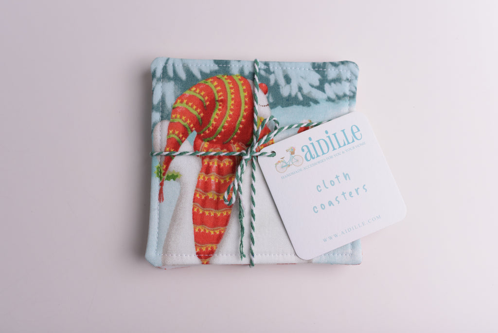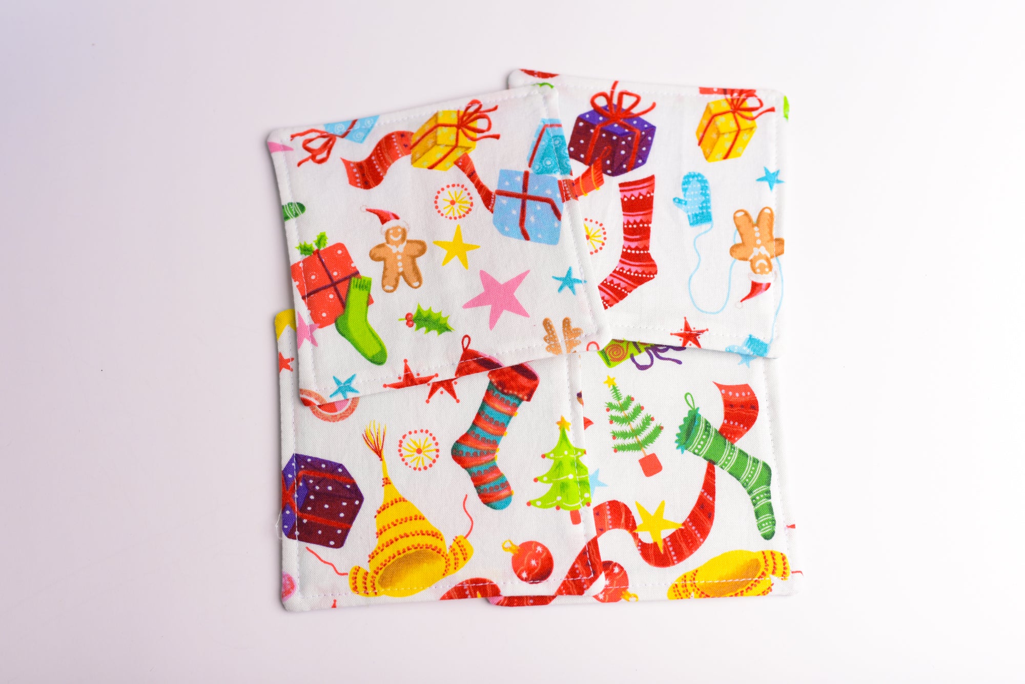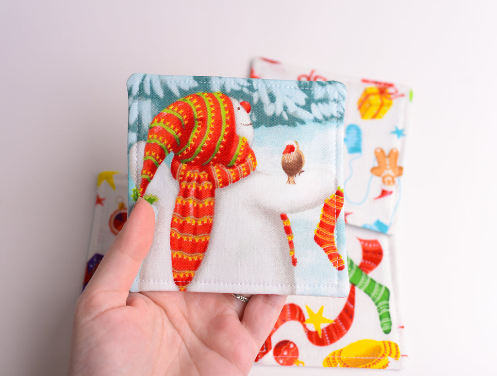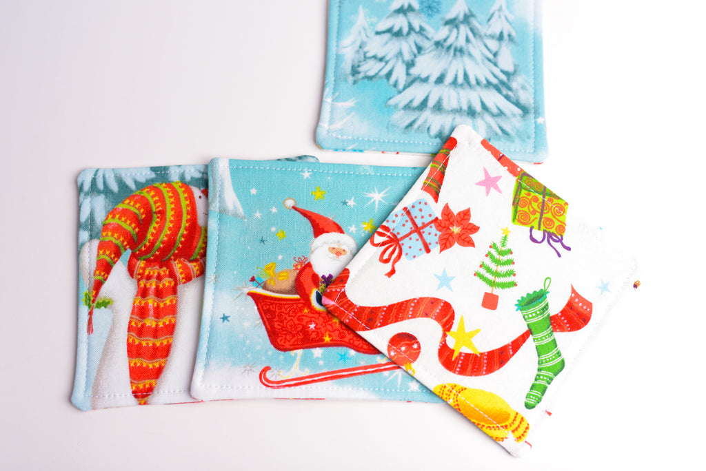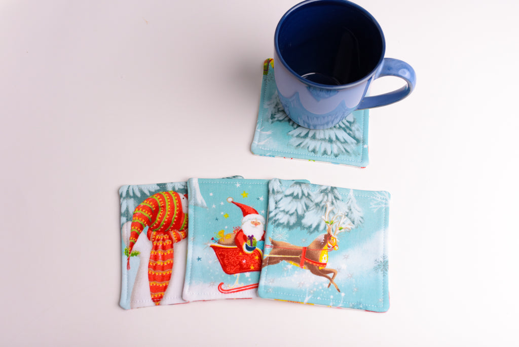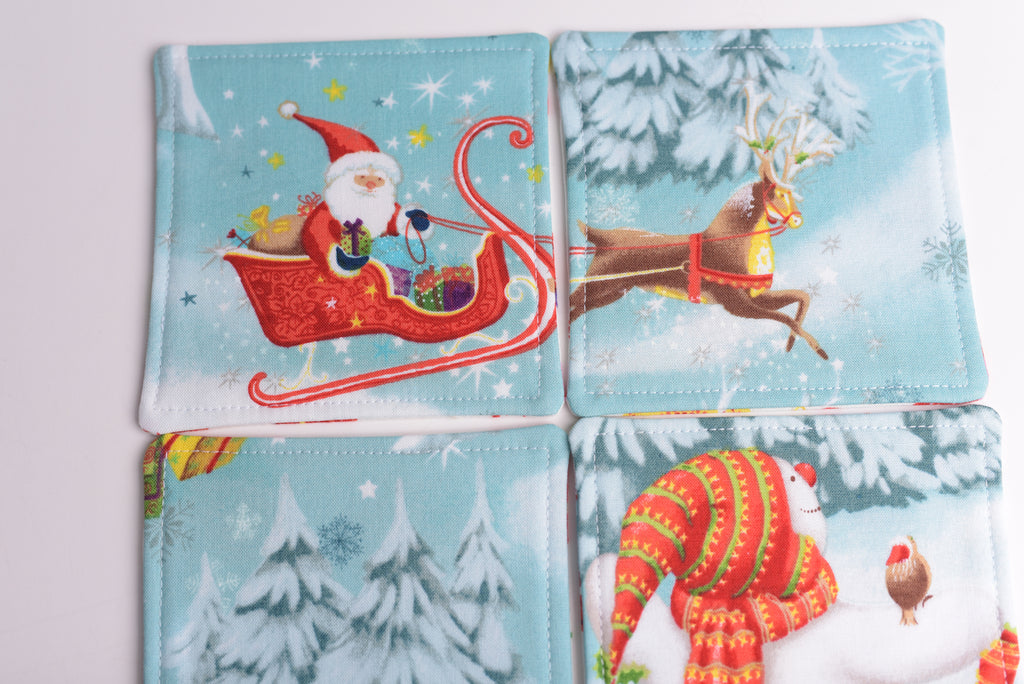 Assorted winter Christmas themed cotton fabric coaster set of 4