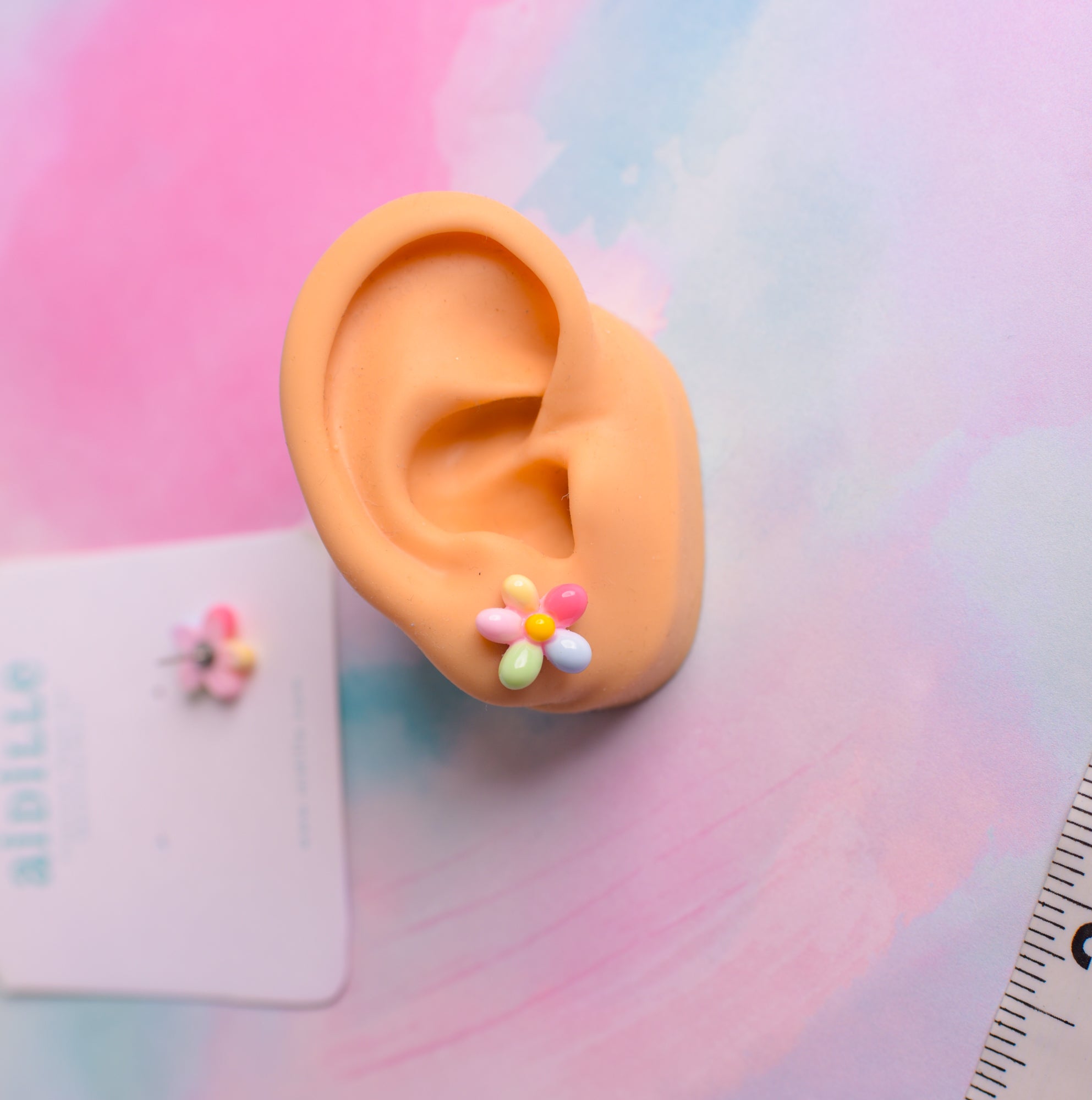 **If earrings are used by children please use only with supervision as they can be a choking hazard for small kids. Silicone ear model is based on the size of an average woman.