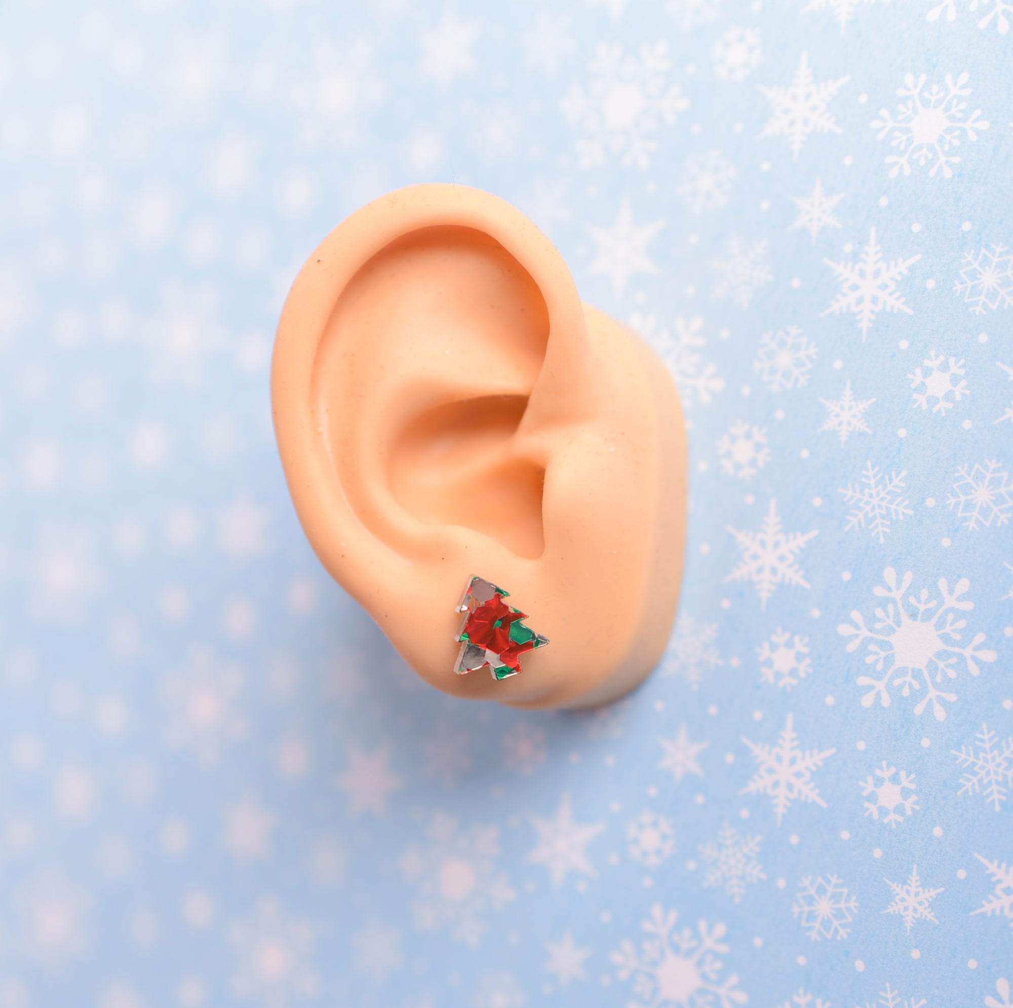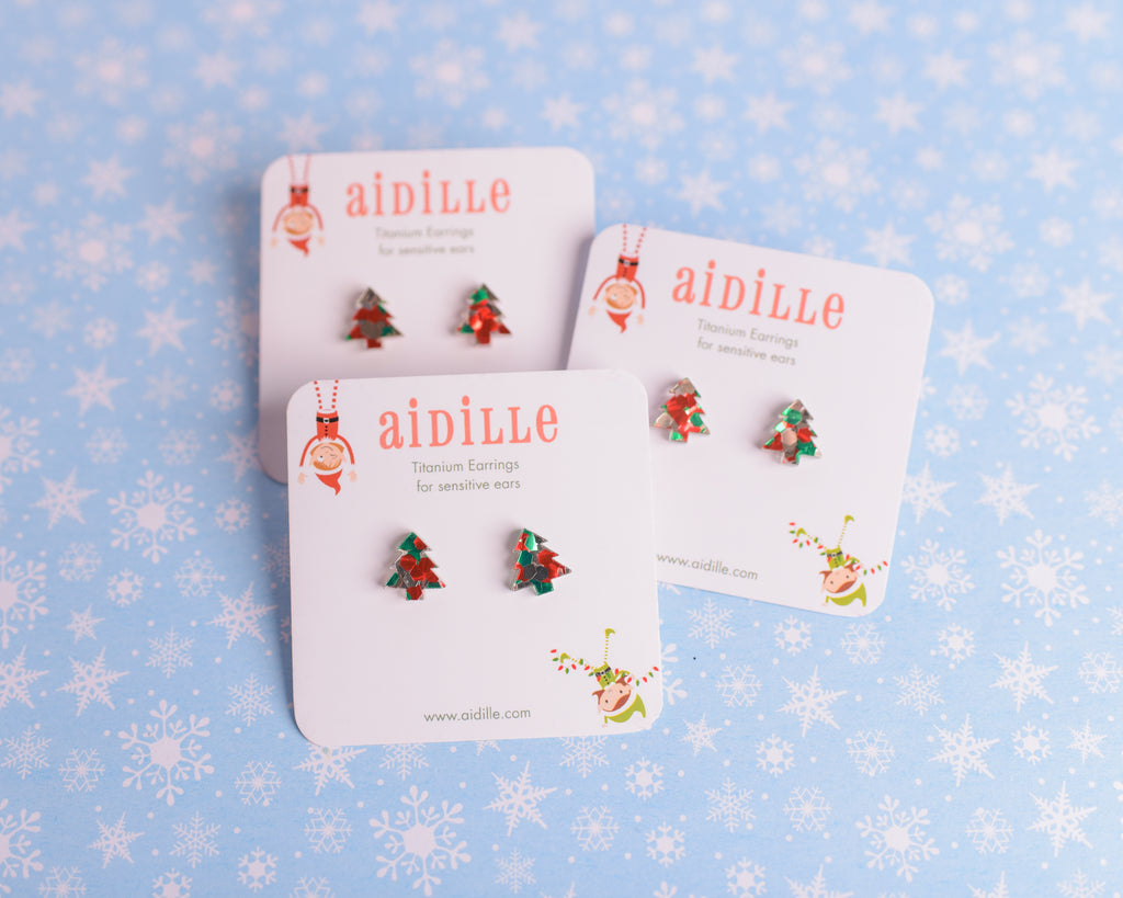 Earrings are hand assembled using made in the USA laser cut acrylic charms and medical grade titanium posts. Photos, text ©Aidille 2025 Colors may vary based on monitor settings.