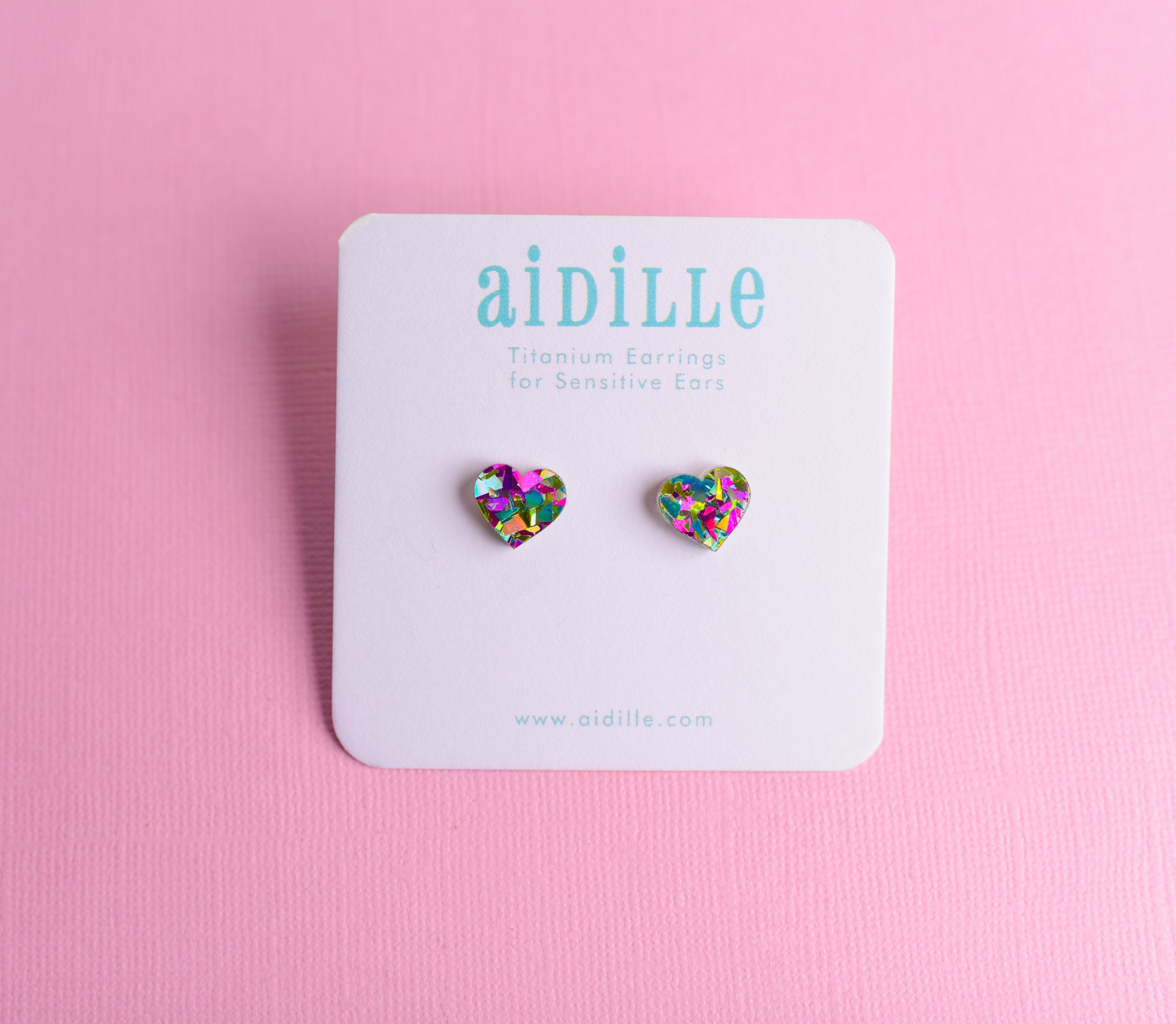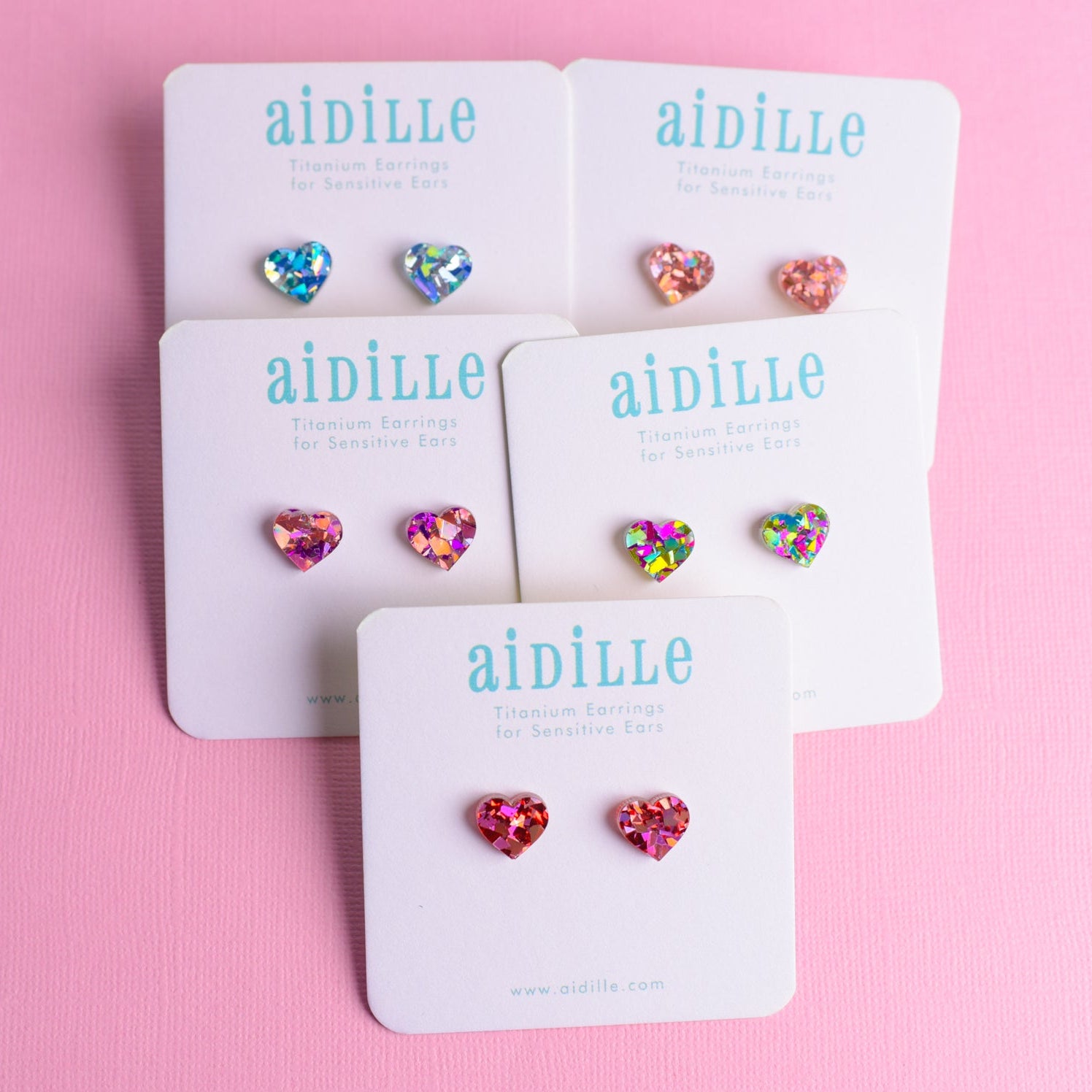 One pair of glitter acrylic heart earrings in 5 colors