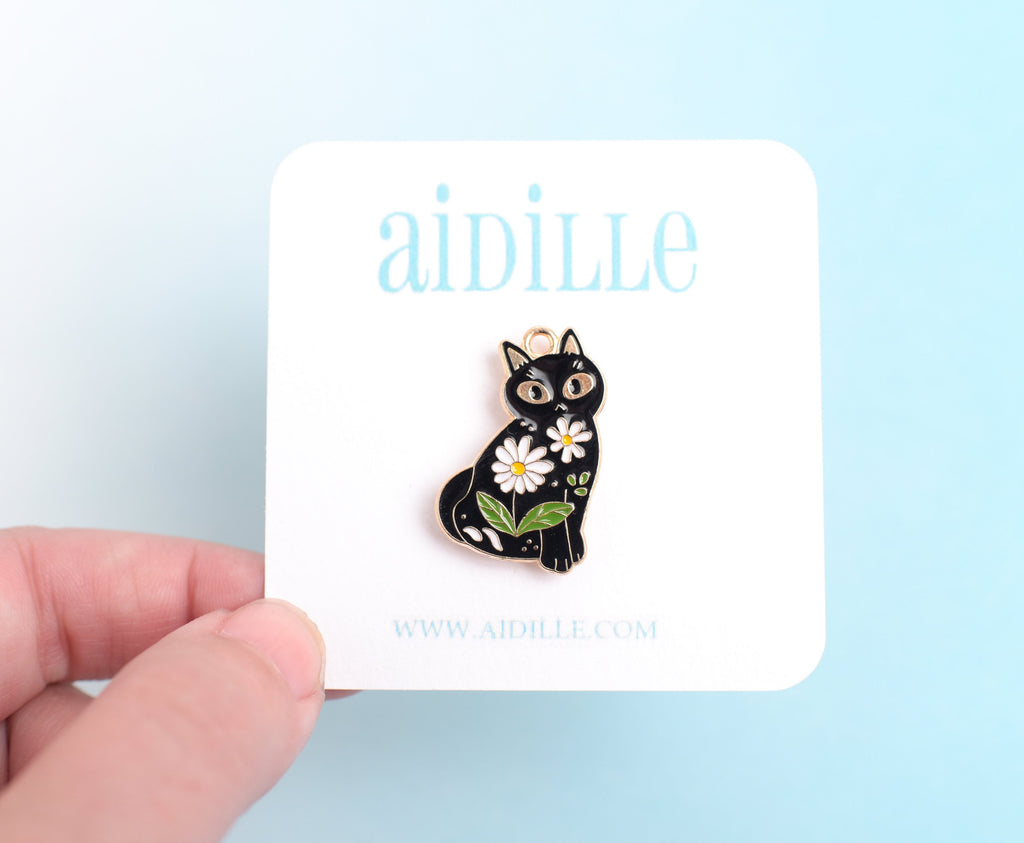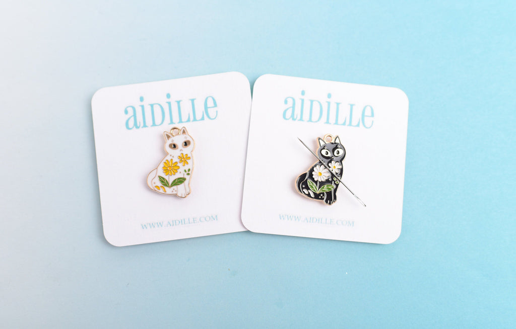 One enamel Floral Cat Needle Minder