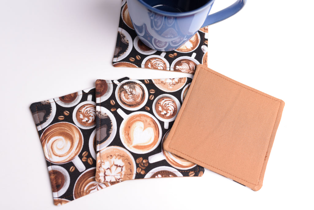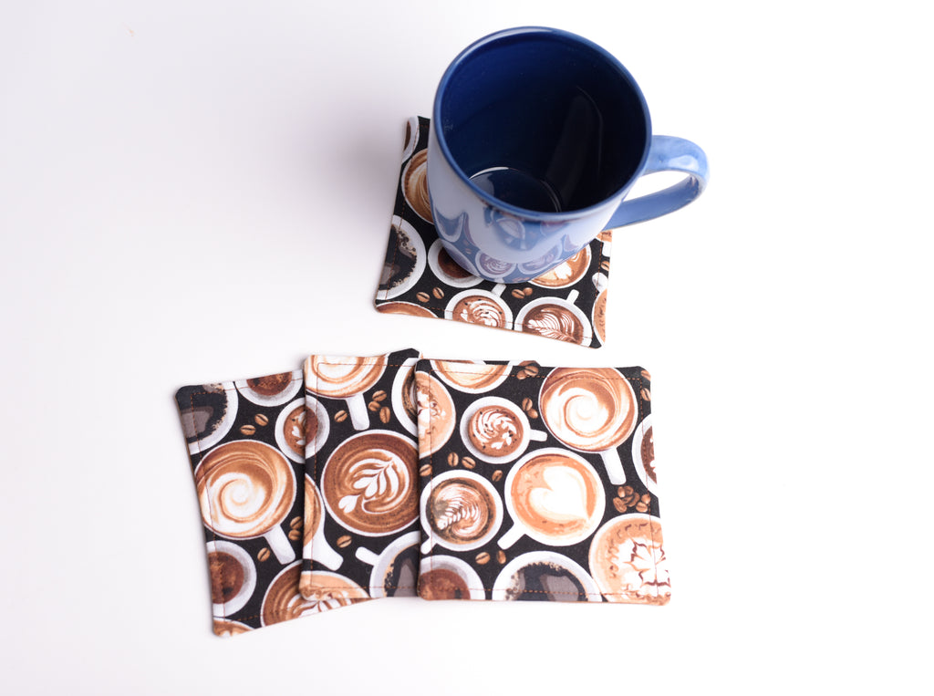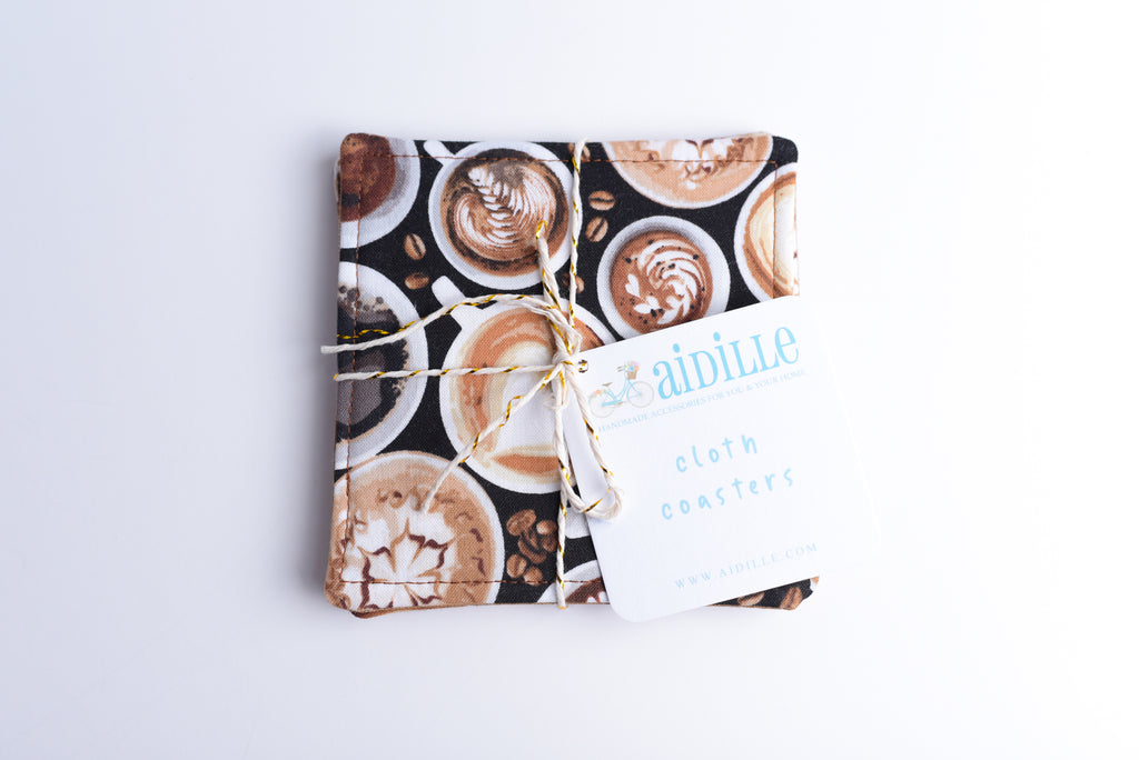 Fabric coasters measure approx 4.5" square but may vary slightly