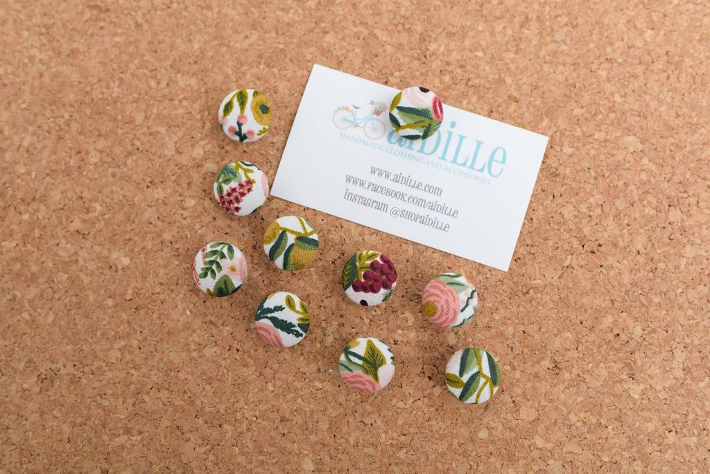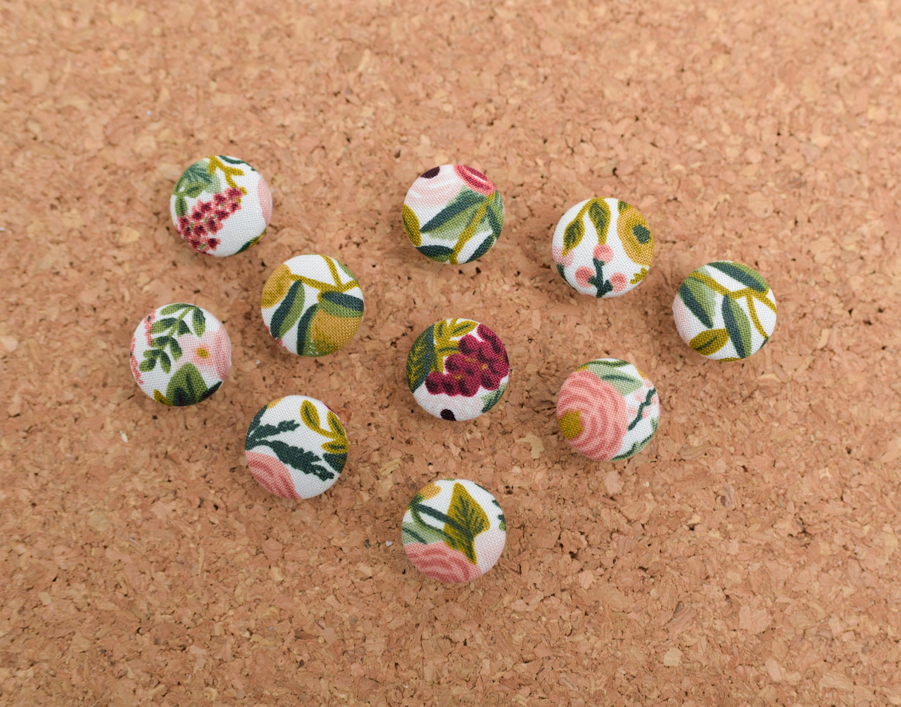 Pink Wildwood Fabric Button Push Pins- Set of 10