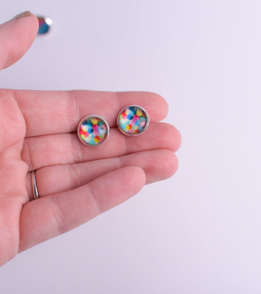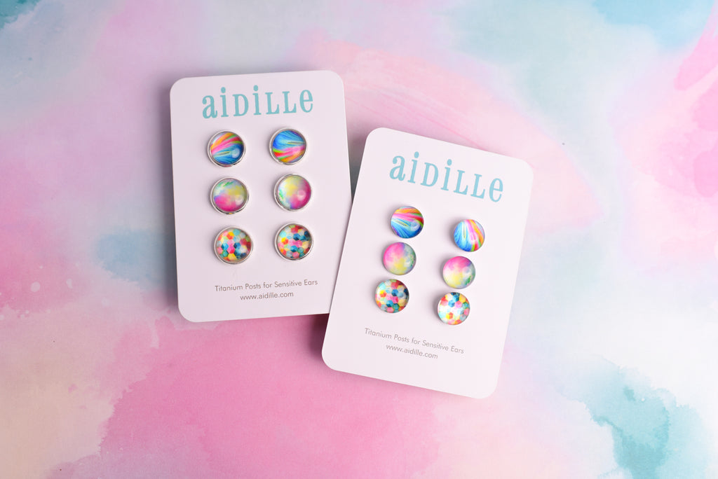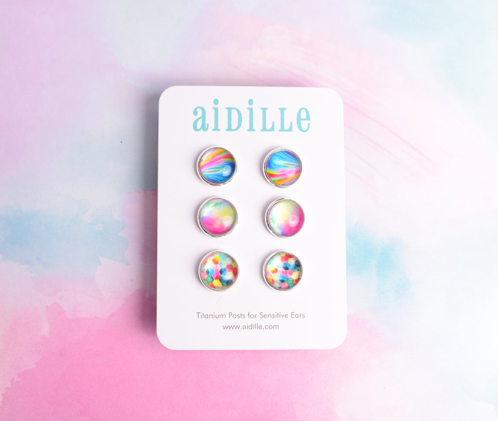 Rainbow earring trio with 3 sets of resin circle earrings