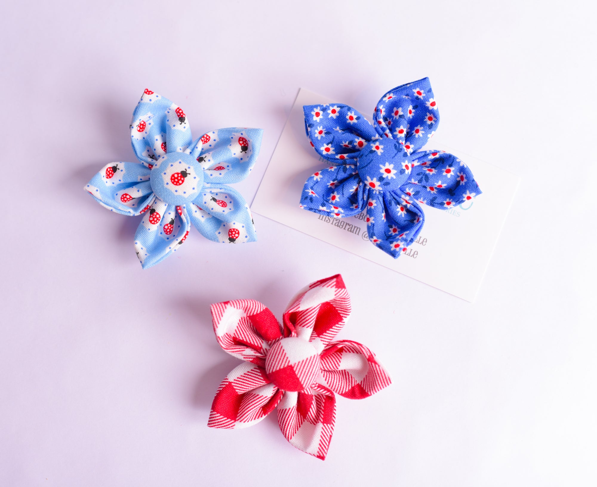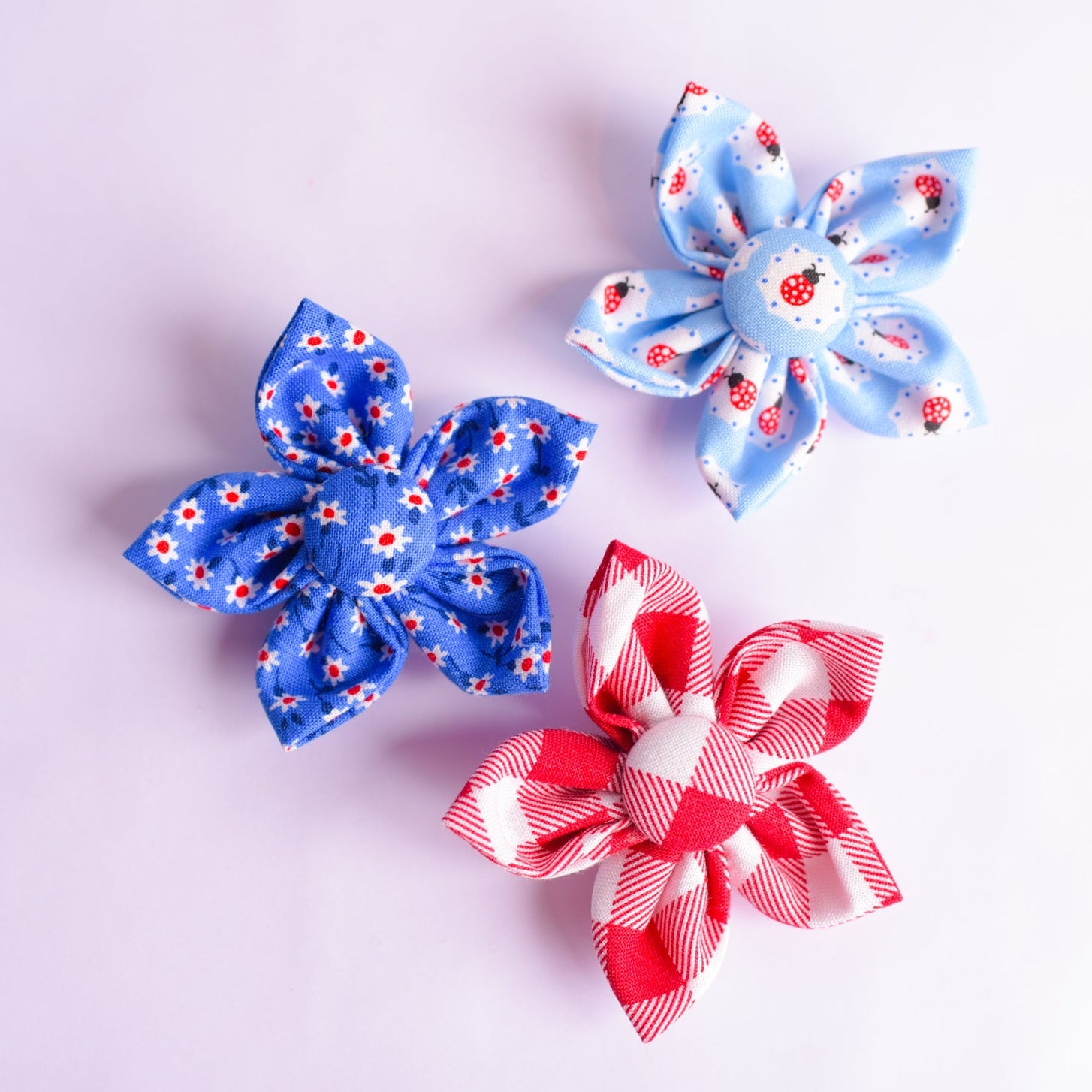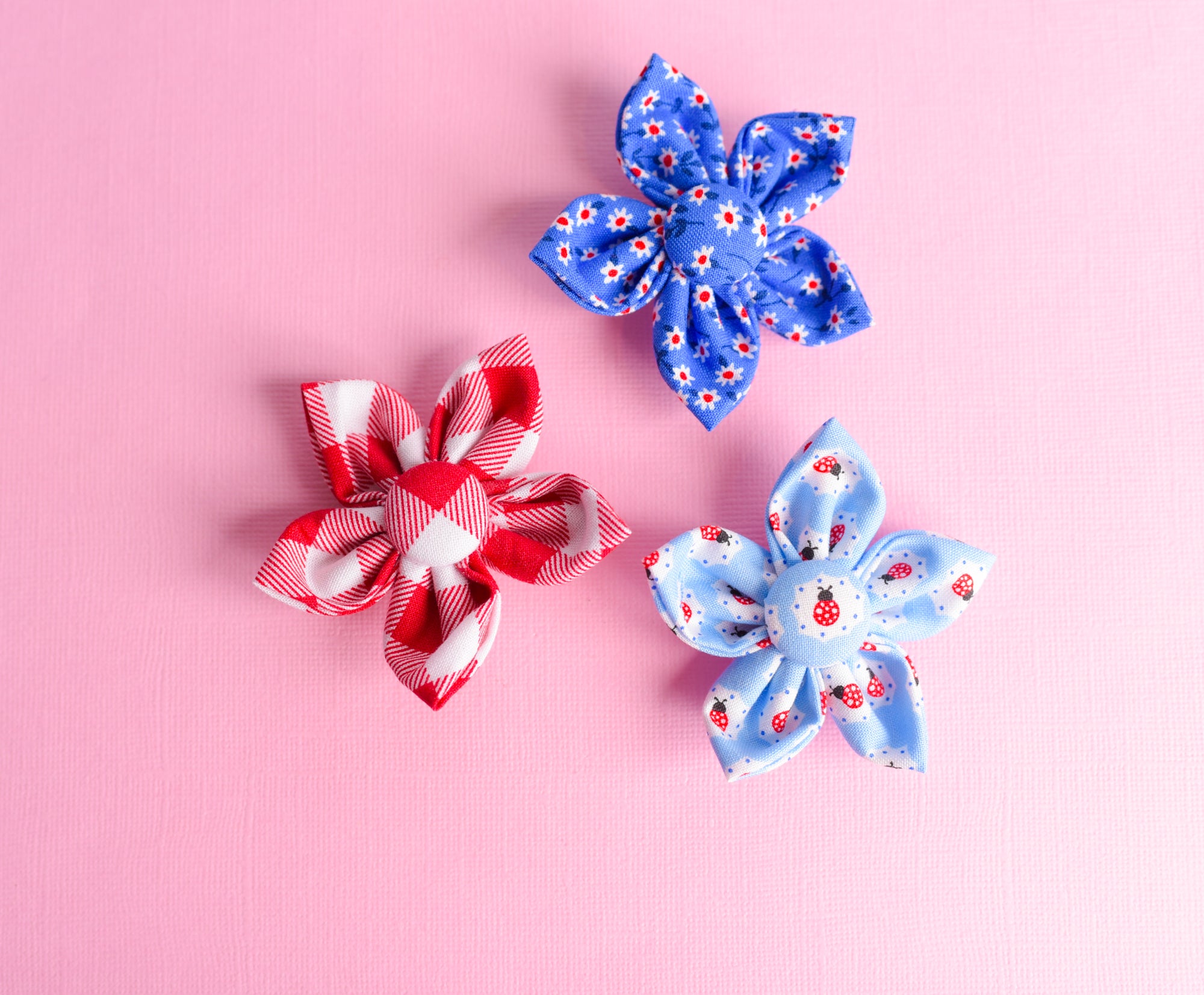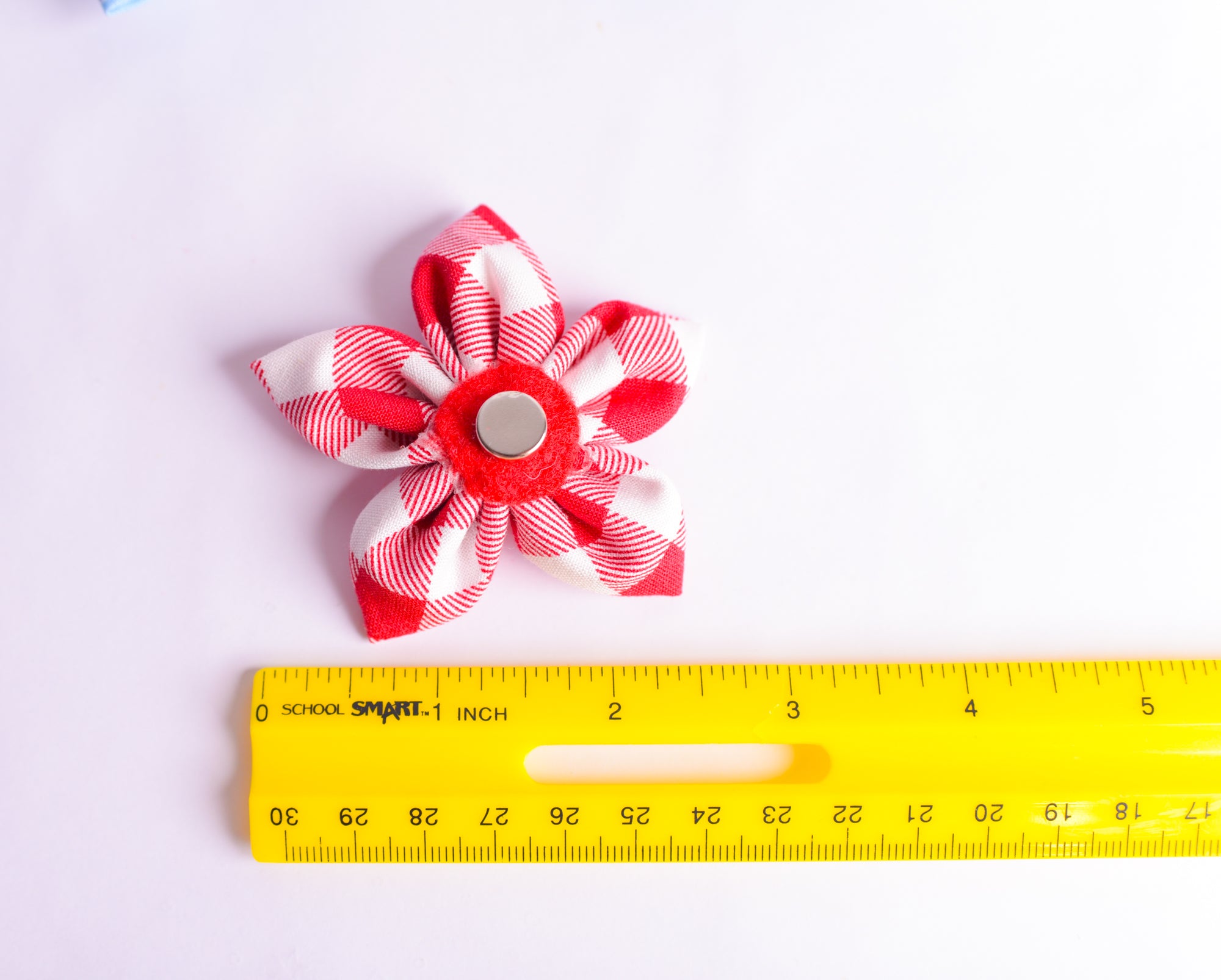 Red and white gingham fabric flowers