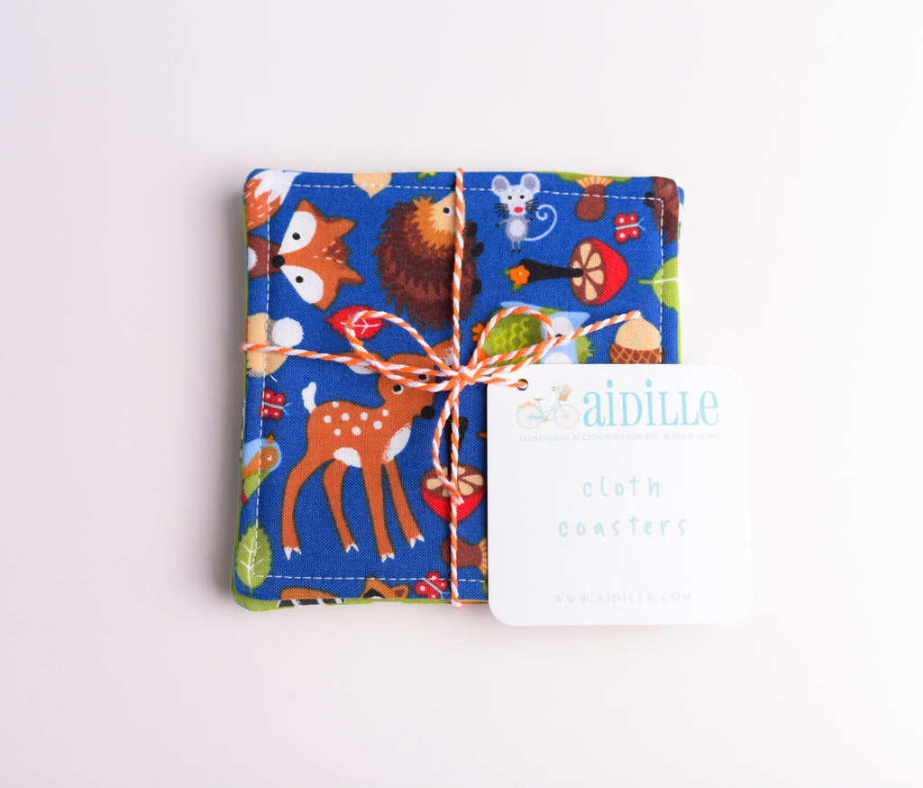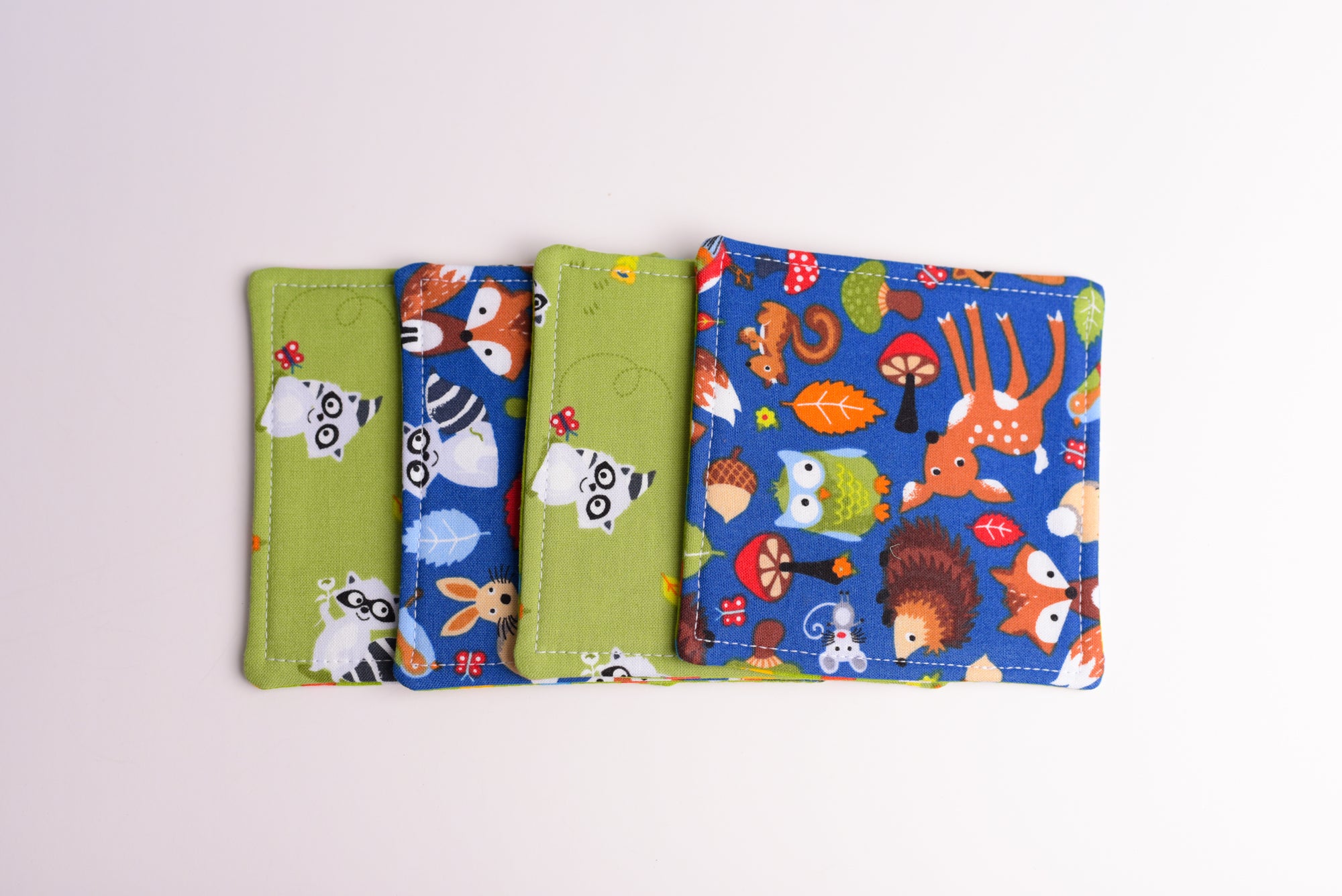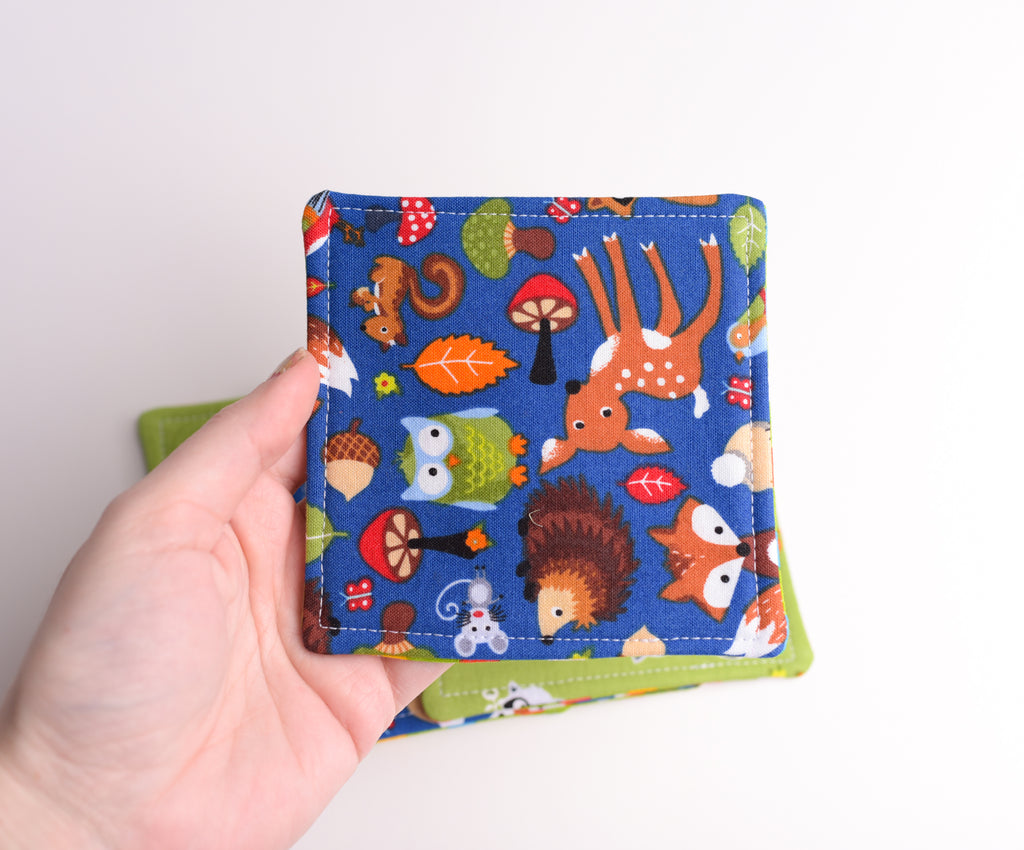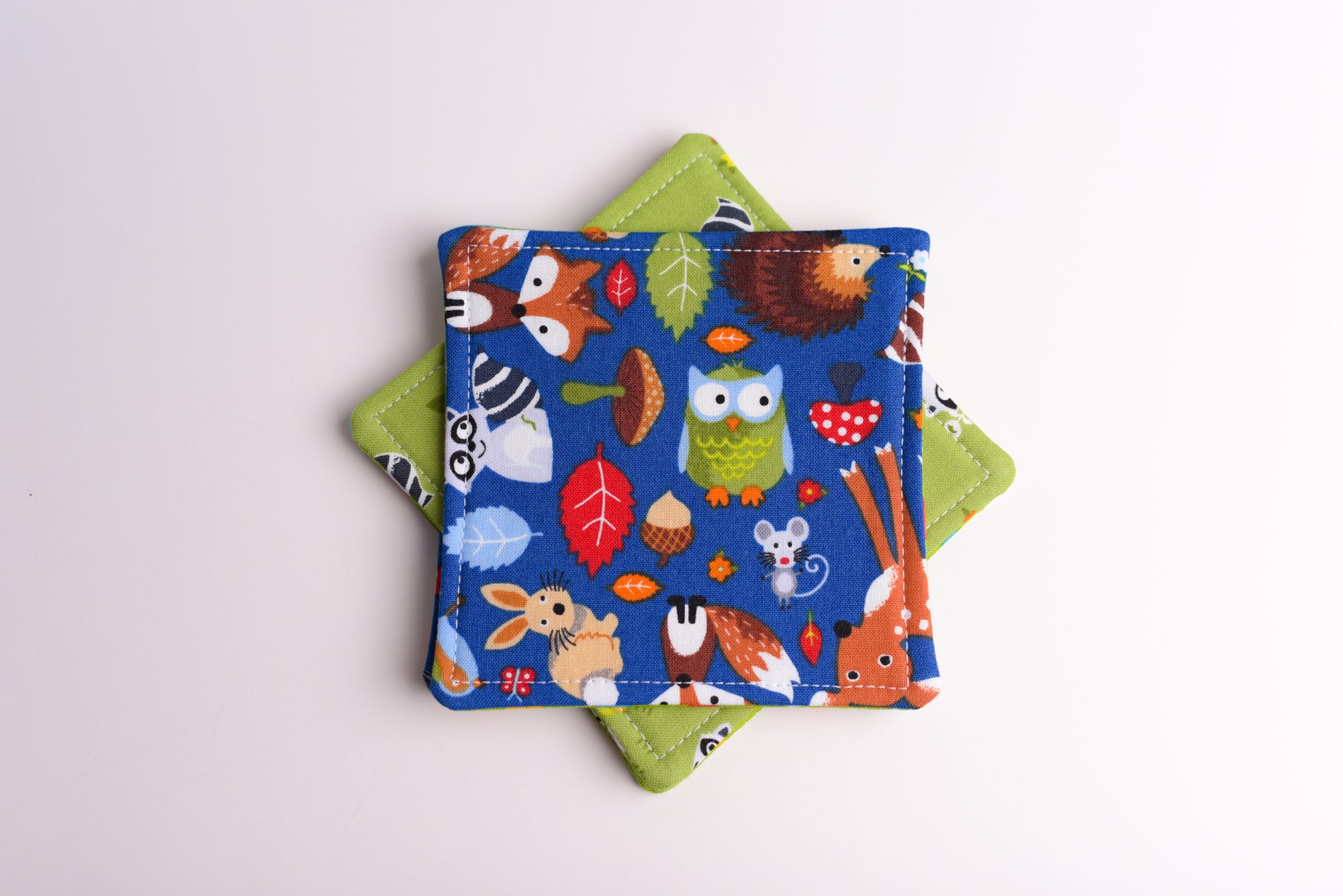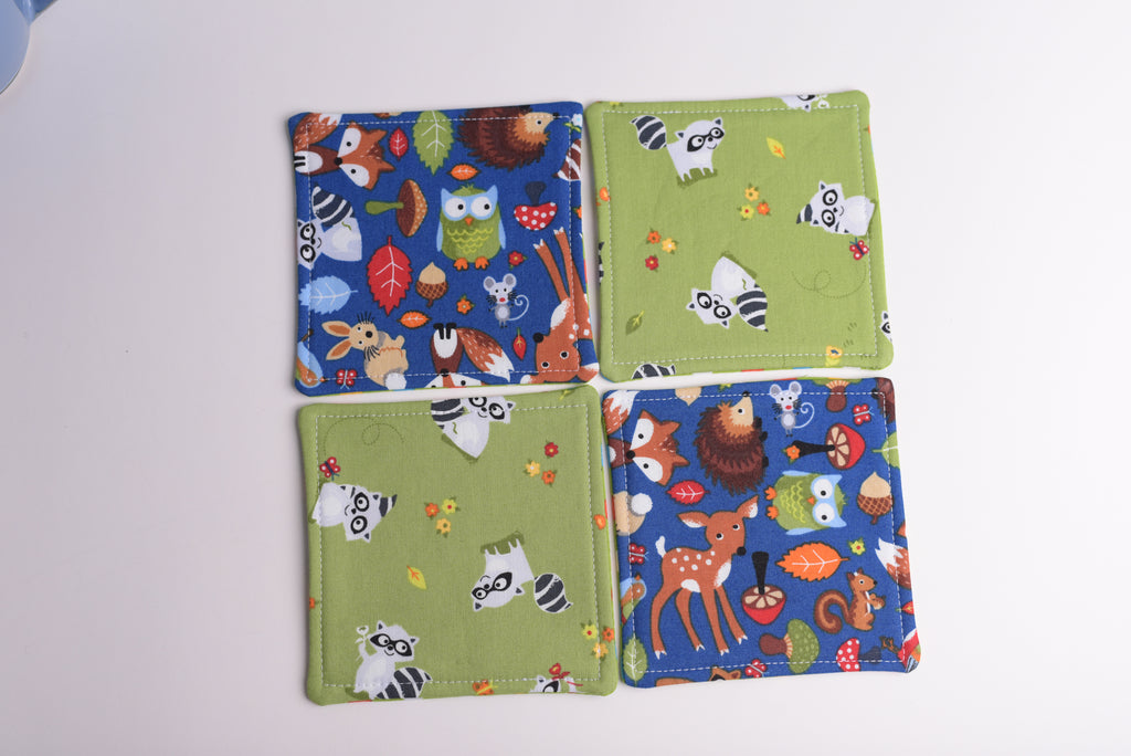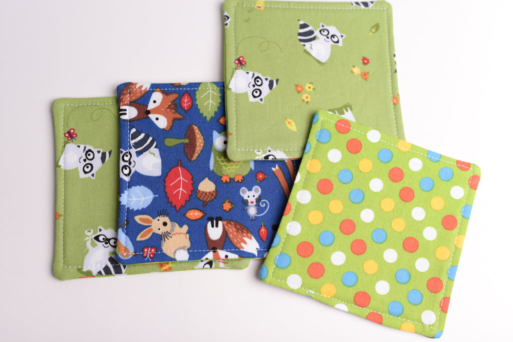 Fabric coasters measure approx 4.5" square but may vary slightly