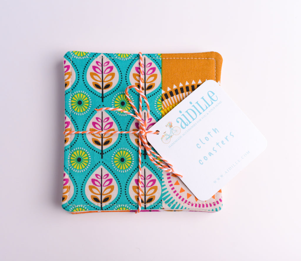 Fabric coasters measure approx 4.5" square but may vary slightly
